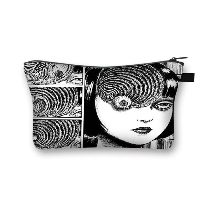 Косметичка с аниме ужасным принтом женская, спирализованная Сумочка для макияжа манга томиди, Портативная сумка для туалетных принадлежностей, миничехол для косметики для девушек, подарок