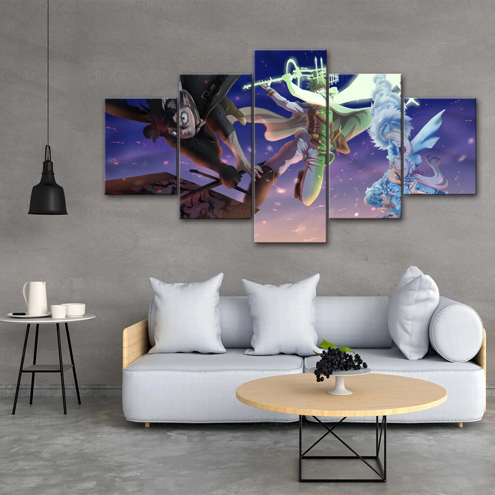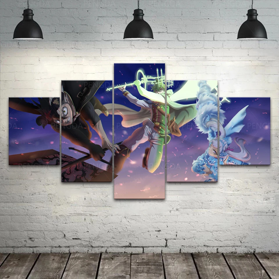 Печатный постер Asta and Yuno, домашний декор, холст с черным клевером, картина, модульное искусство, 5 панелей, аниме Noell Silva, картины для спальни