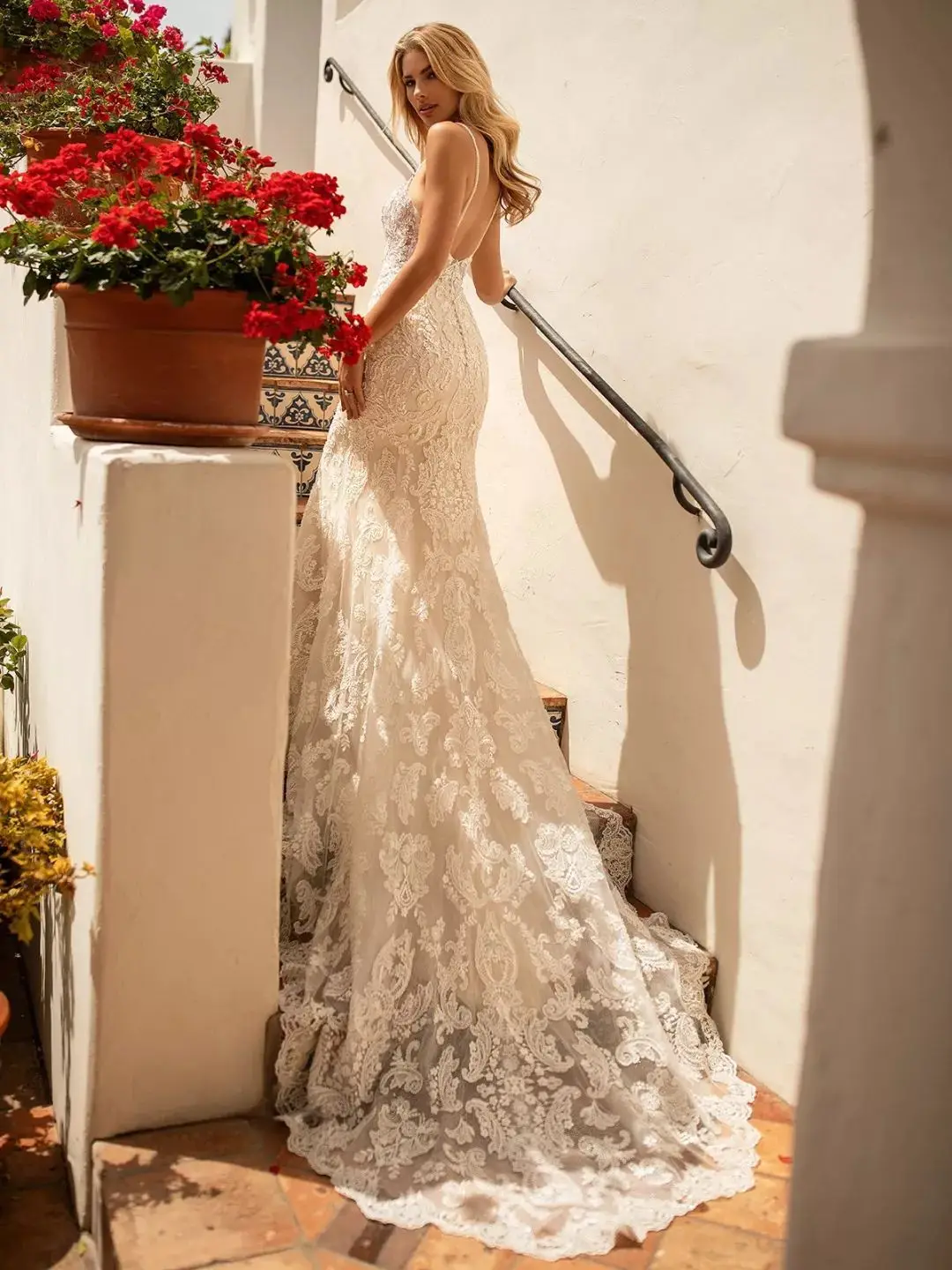 Чудесные кружевные свадебные платья-футляр с иллюзионным вырезом, п...