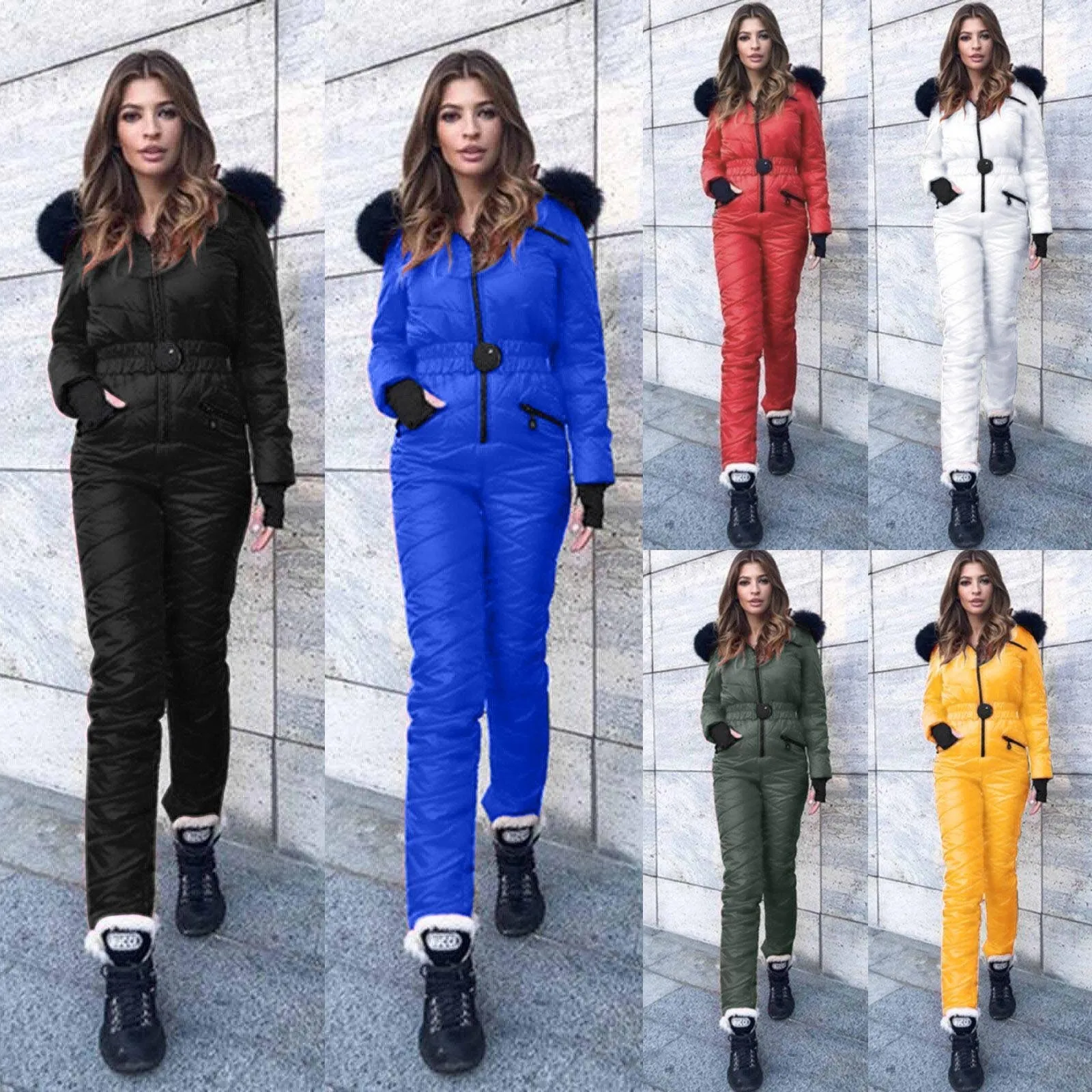 Женский цельный лыжный комбинезон, Модный повседневный плотный тепл...