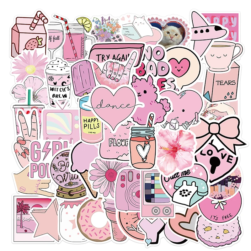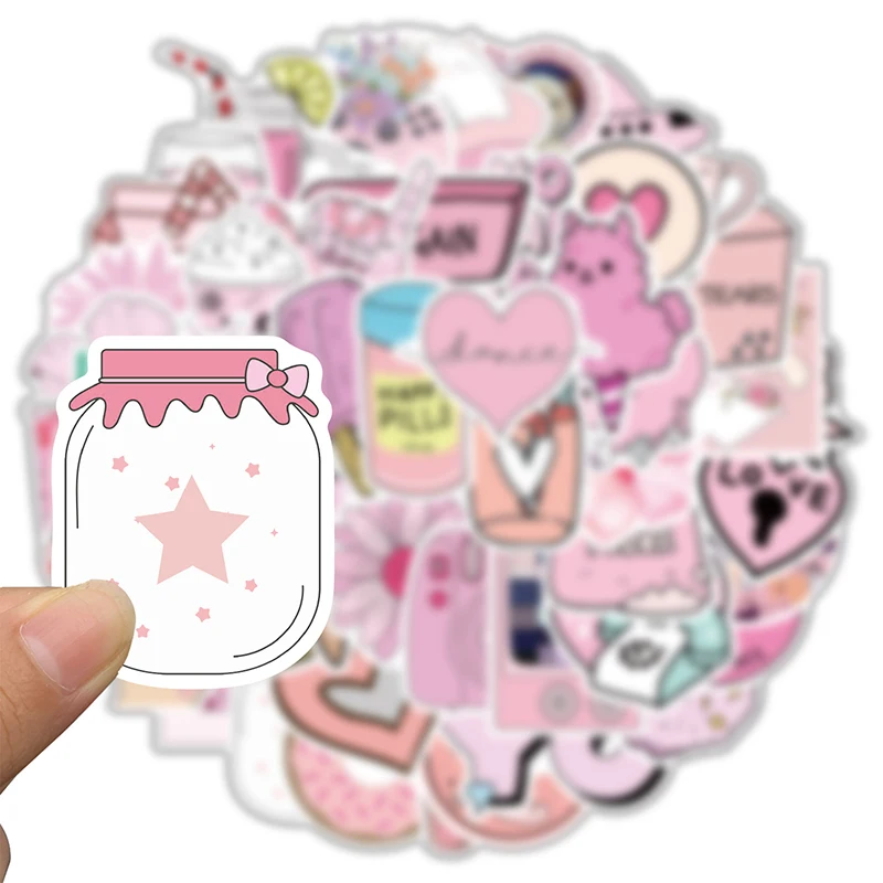 50 шт. милые Мультяшные Розовые наклейки для девочек, багажа, скейтборда, велосипеда, рюкзака, водонепроницаемые наклейки для ноутбука, детский подарок