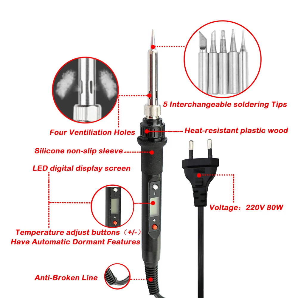 60 Вт/80 Вт Цифровой Электрический паяльник с регулируемой температурой внутренний нагревательный Тип Постоянная температура паяльник для сварки