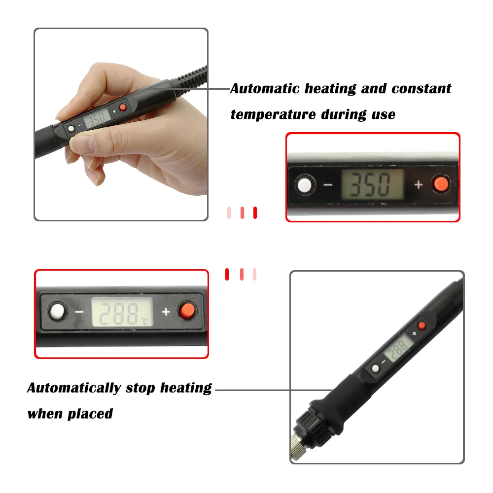 Цвет: черный/белыйЧастота: 50 Гц/60 ГцДиапазон температур: 180 ~ 500 ℃/356 ~ 932 ℉Стабильность температуры: ± 5 ℃Тип нагрева: Wmore керамический элементНаконечники паяльника: 900M-B1.2Провод Длина: 1,4 m / 55.12inРазмер паяльника: Approx.242 * 25*25 мм/9,6*0,98 * 0.98inВес паяльника: Approx.96g/3,4 ozРазмер посылка: прибл. 254*55*35 мм/10*2,2 * 1.4nВес посылка: прибл. 139 г/4,9 унций