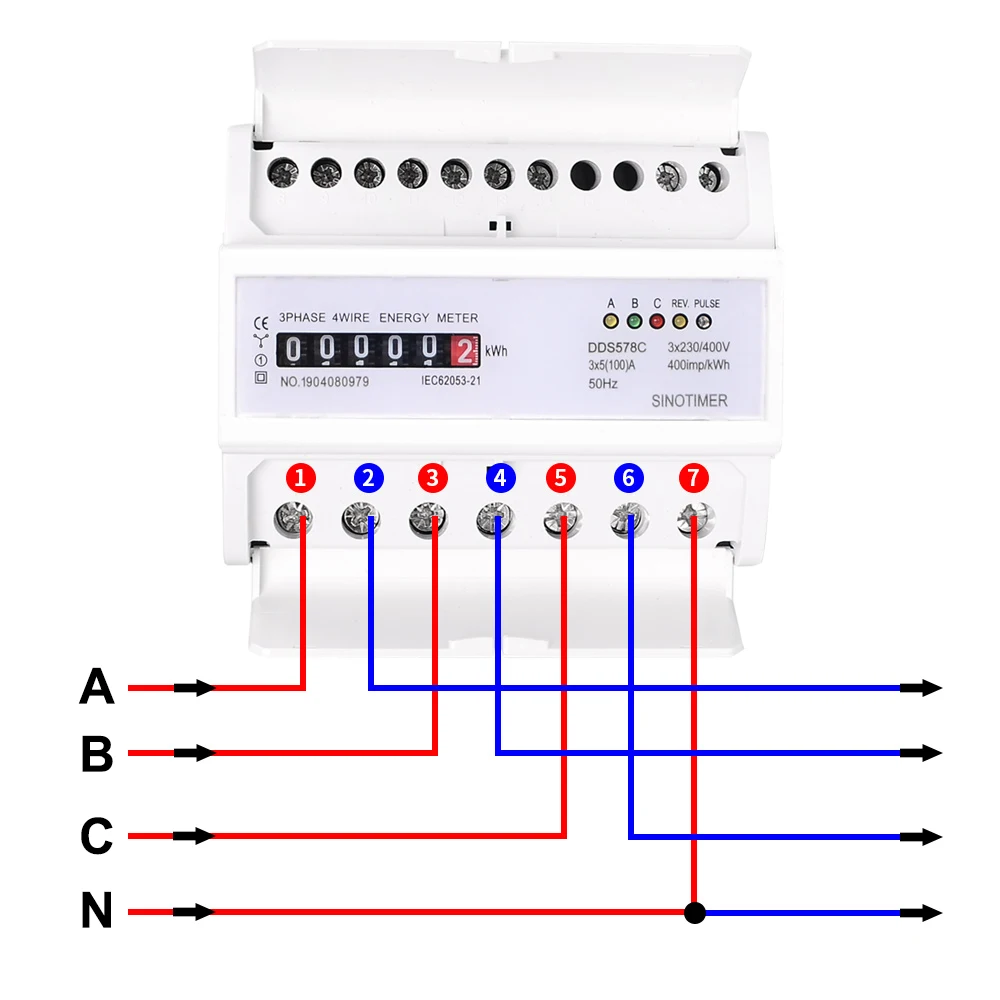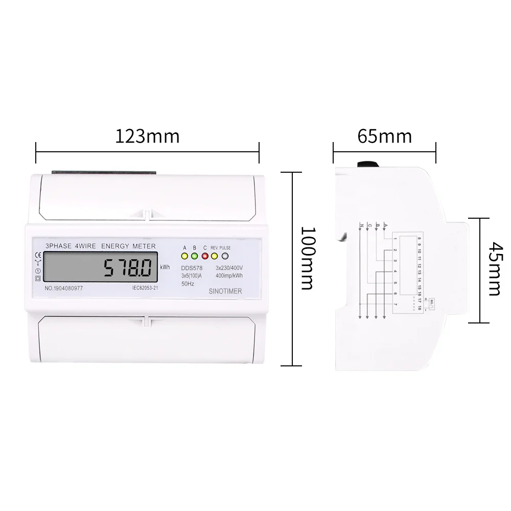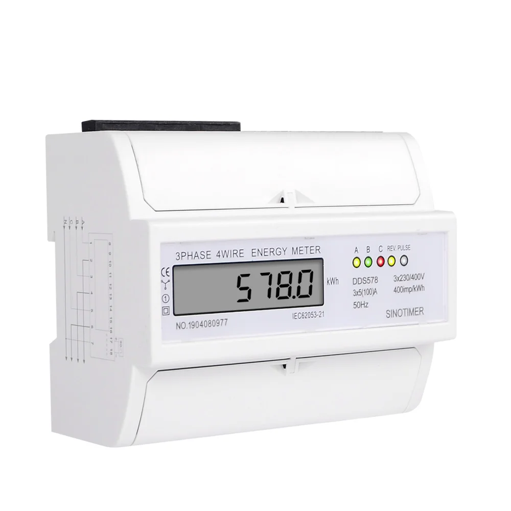 Трехфазный цифровой измеритель энергии 5-380 А, В переменного тока, 4 провода, ЖК-дисплей, кВтч, потребление энергии, измерение электричества, 35 мм, монтаж на DIN-рейке