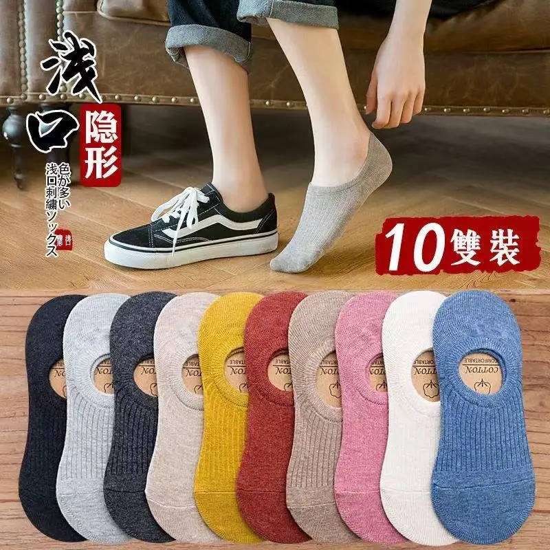 Носки женские невидимые в японском стиле, нескользящие носки-лодочки с низким горлом, для весны и лета, 10 пар