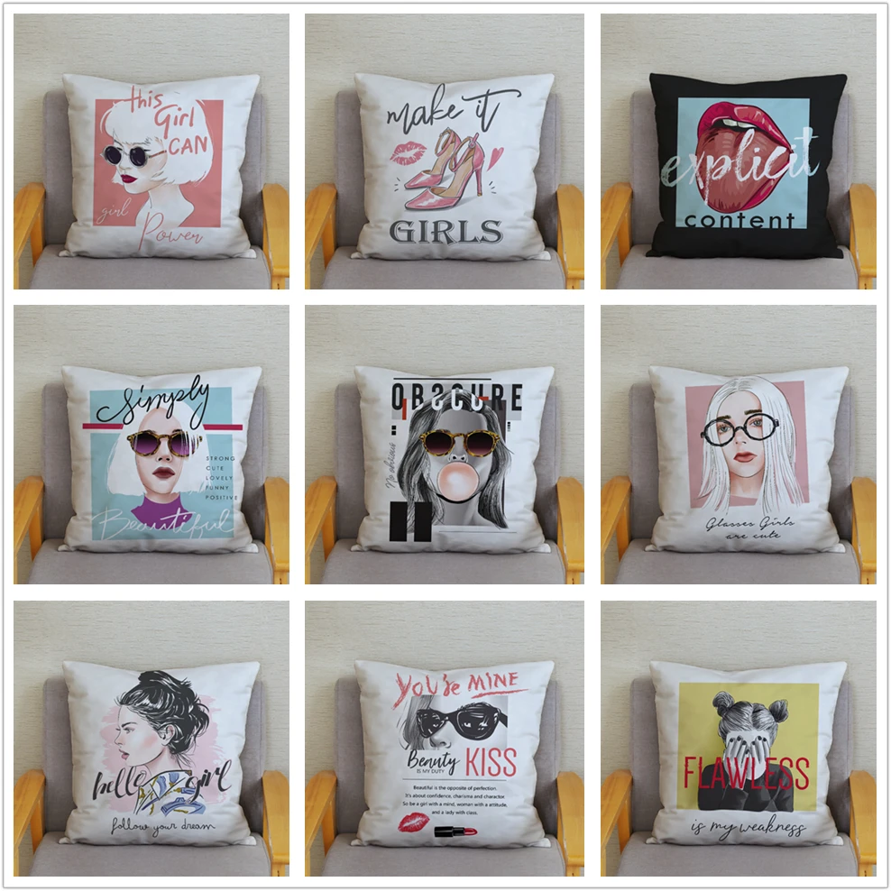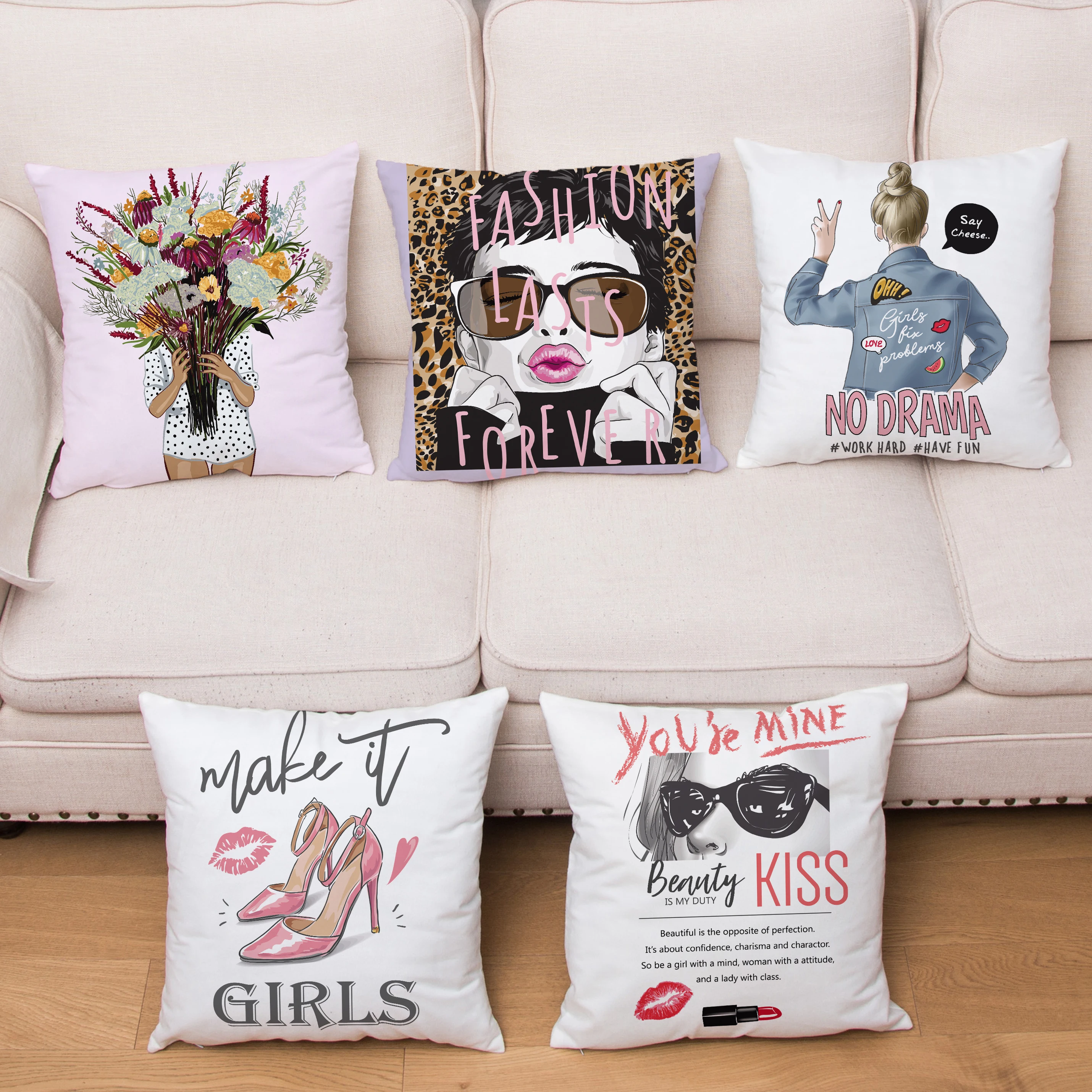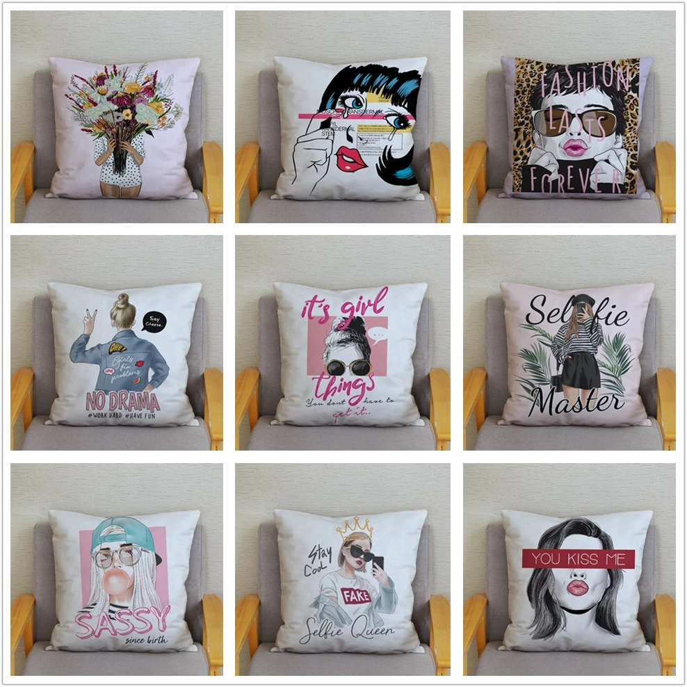 Модный чехол для подушки с принтом для женщин и девочек, наволочка с мультяшным рисунком для леди, мягкие плюшевые квадратные Чехлы для подушек, для дивана, домашний декор