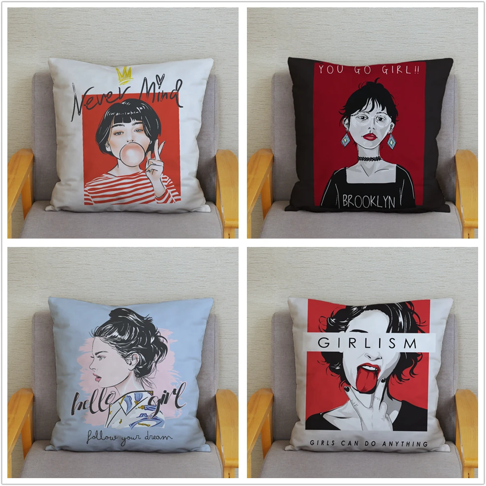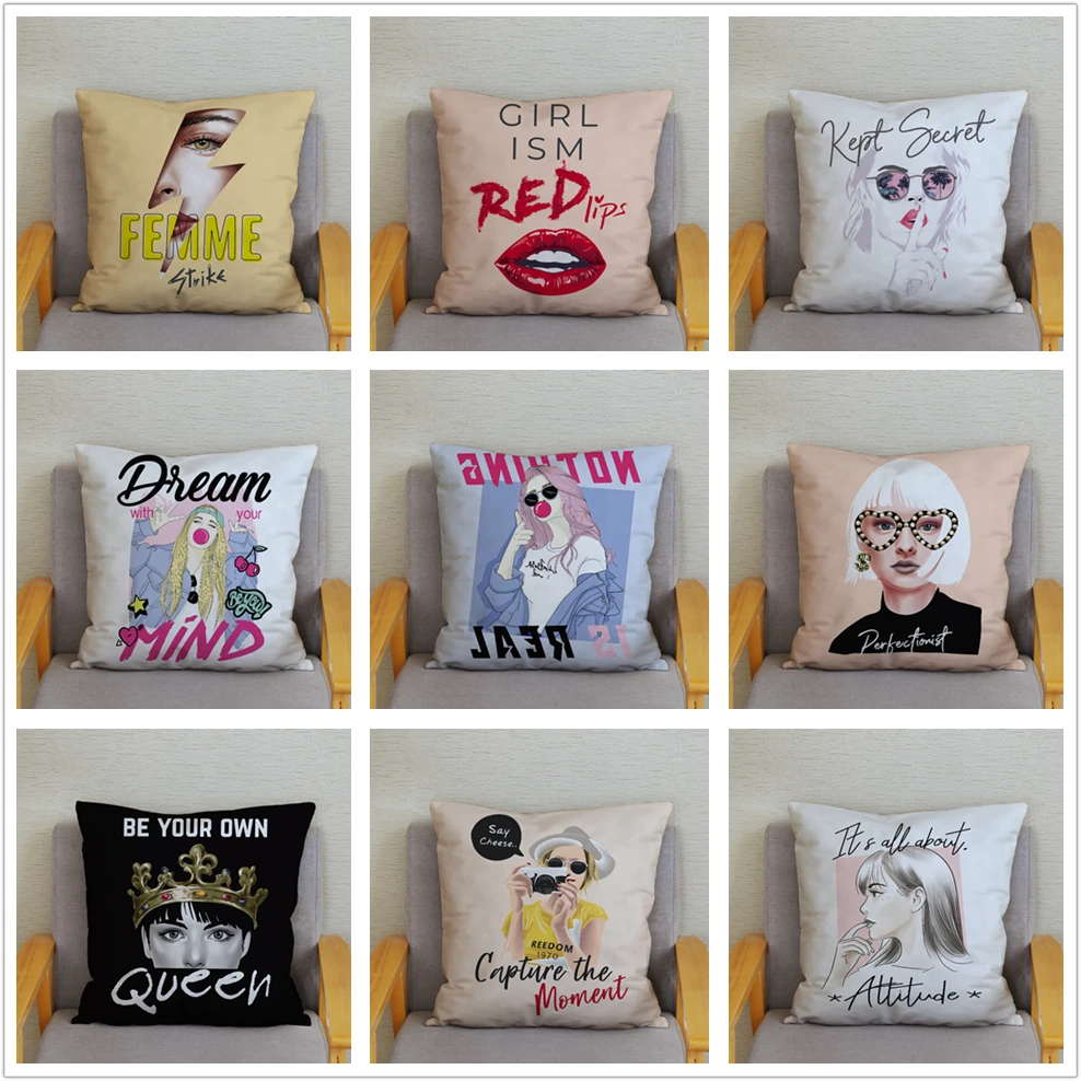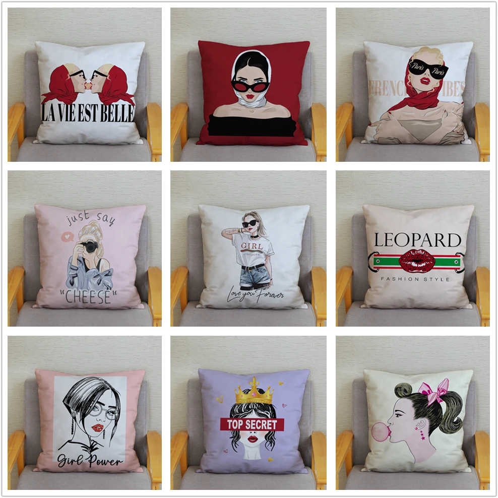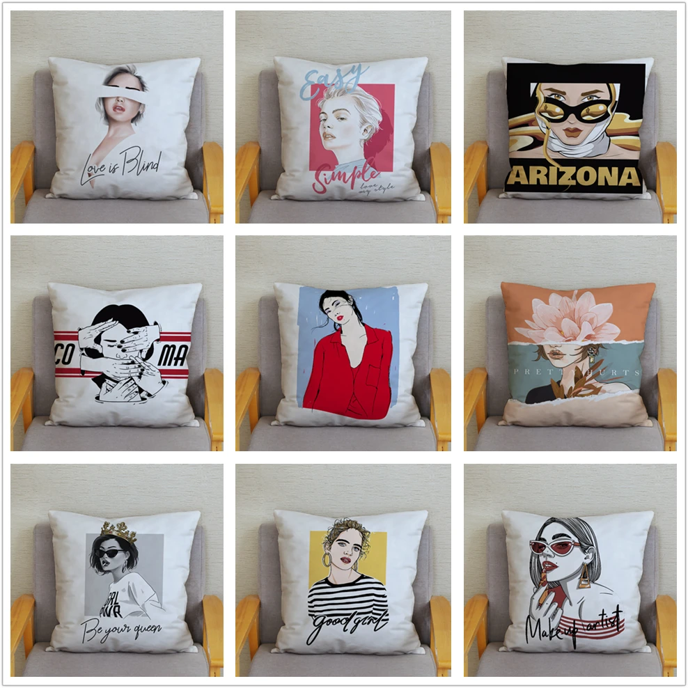 Модный чехол для подушки с принтом для женщин и девочек, наволочка с мультяшным рисунком для леди, мягкие плюшевые квадратные Чехлы для подушек, для дивана, домашний декор