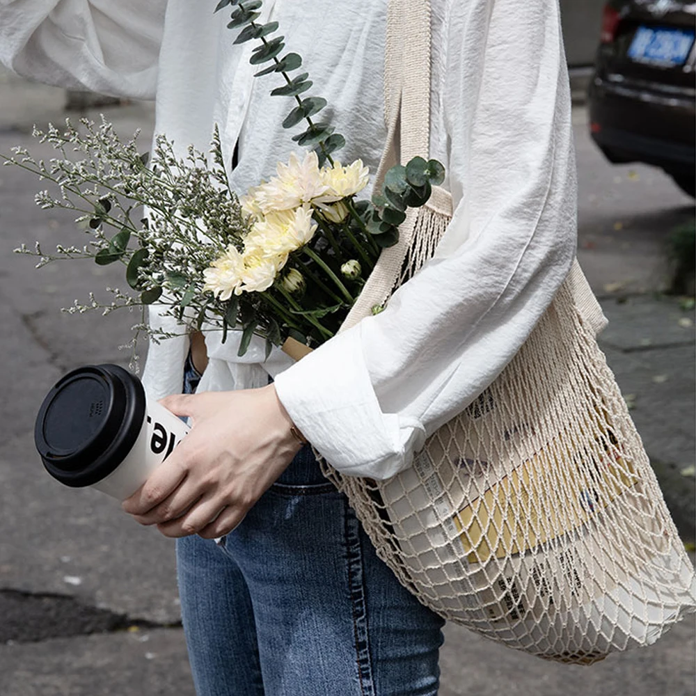 1 шт., многоразовая сетчатая Хлопковая Сумка-тоут для покупки фруктов
