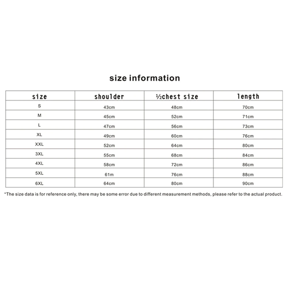 SizeS,M,L,XL,XXL/2XL,XXXL/3XL,4XL,5XL,6XL