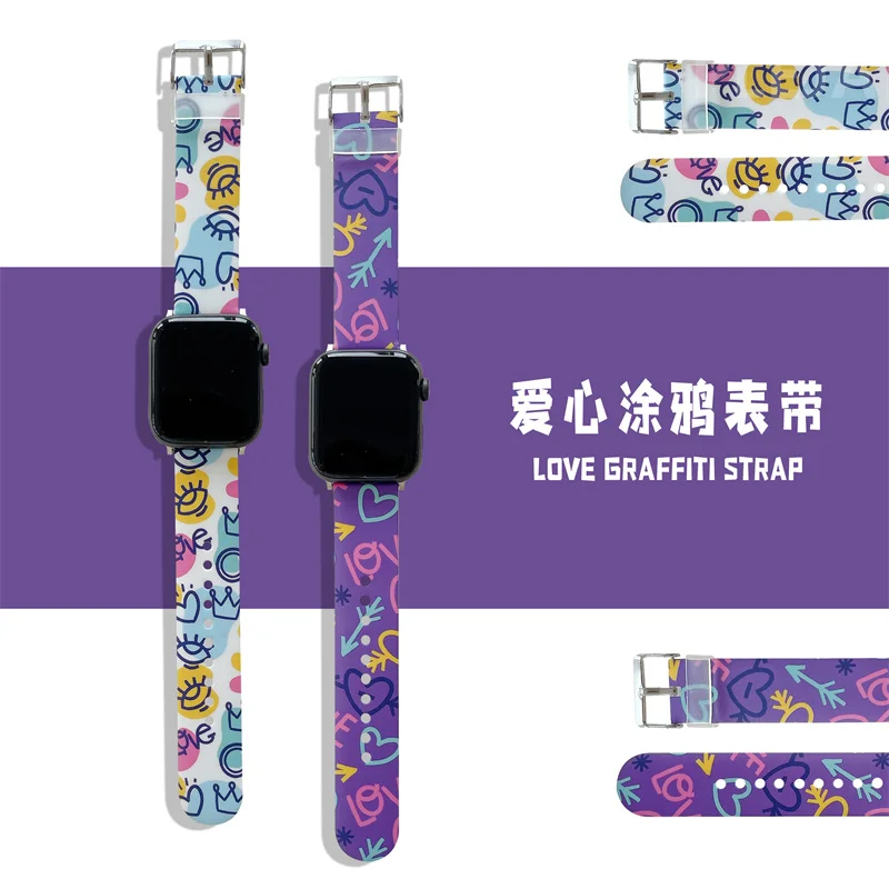 Ремешок с принтом сердечек для Apple Watch Band 44 мм 40 мм 38 мм 4...