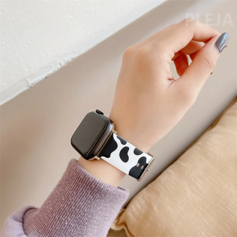 Ремешок с коровьим рисунком для Apple Watch, браслет с геометрическим принтом для IWatch Series 6 5 4 3 2, 44 мм 40 мм 38 мм 42 мм