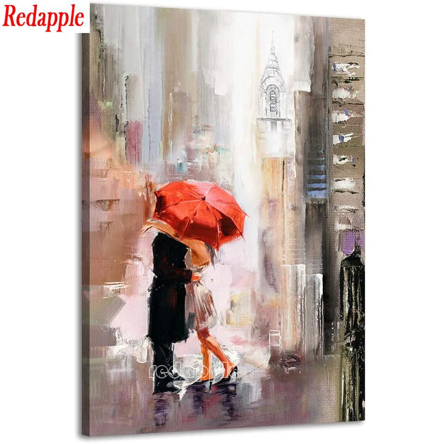 Diy Алмазная картина Романтический Нью-Йорк пейзаж любителей картин с красными зонтиками 5d, полный квадратный круглый дрель вышивка