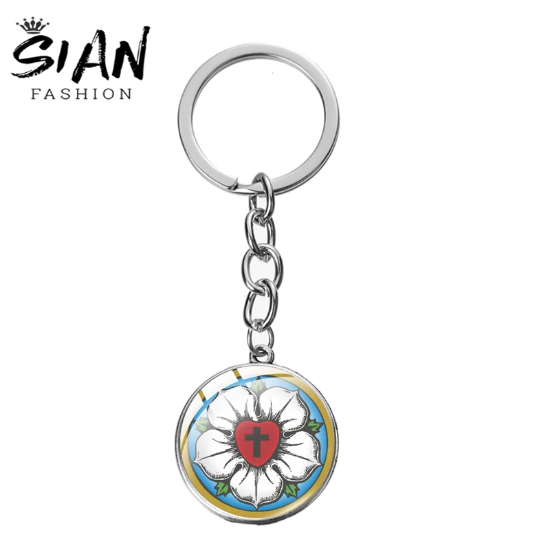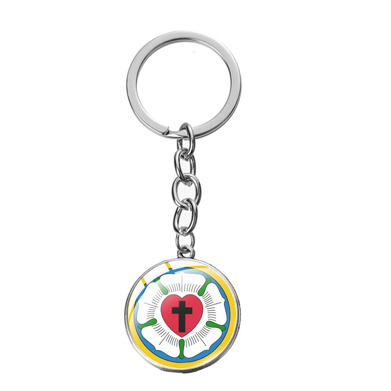 Брелки для ключей с лютеранизмом, подвеска-Кабошон из стекла с уплотнением лютерана, брелки с христианским крестом, религиозные украшения, оптовая продажа