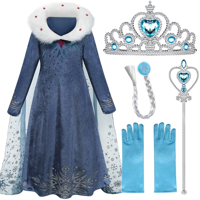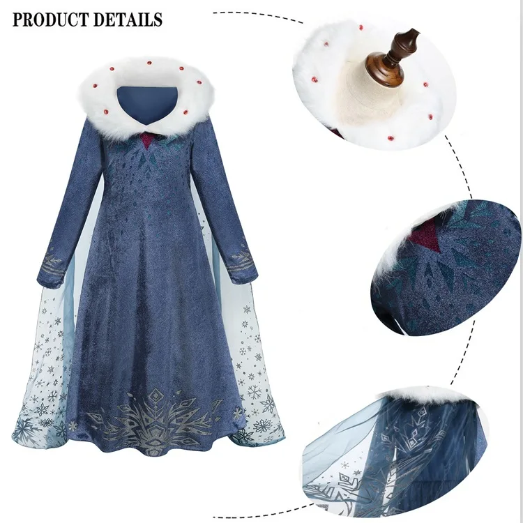 Платье принцессы Эльзы для девочек, вечерние ничный Косплей-костюм Снежной королевы, детское платье на Рождество, день рождения, одежда для девочек