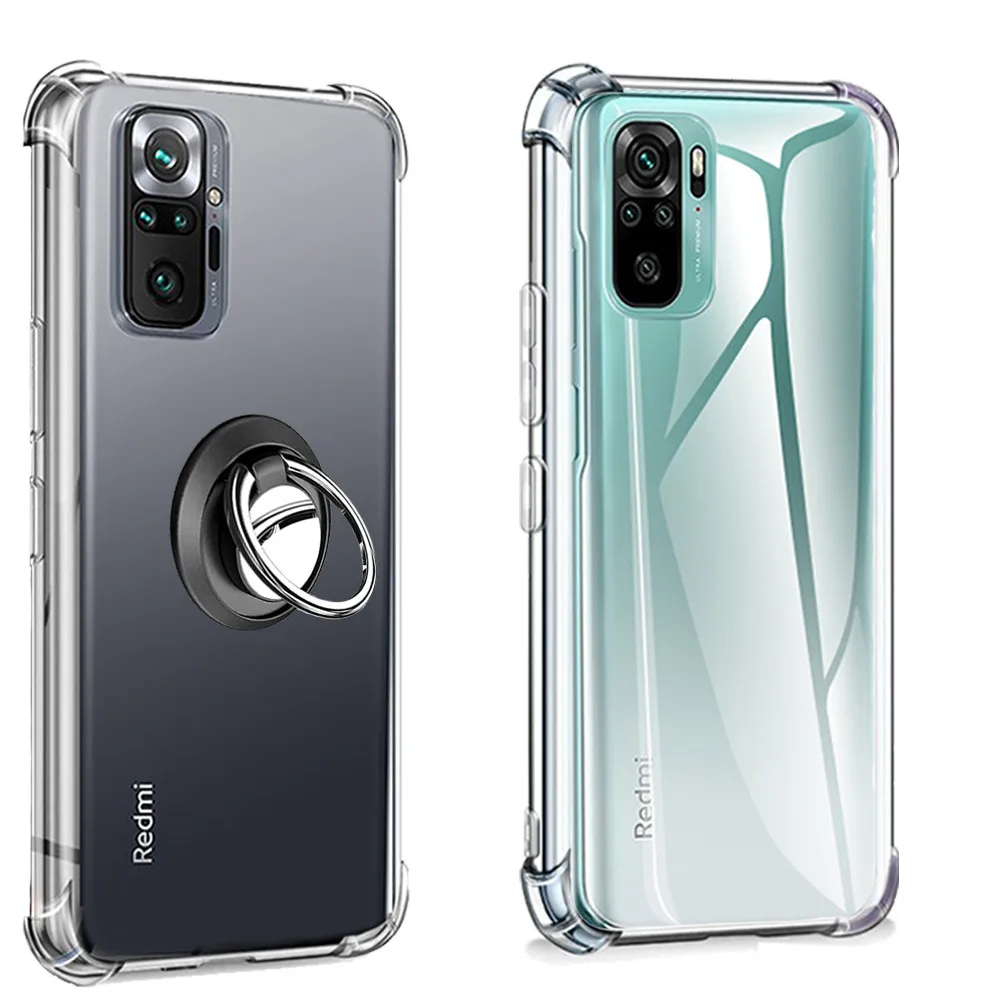 Противоударный чехол для Xiaomi Redmi Note 10 Pro, 10 Pro, прозрачный, с металлическим кольцом-держателем