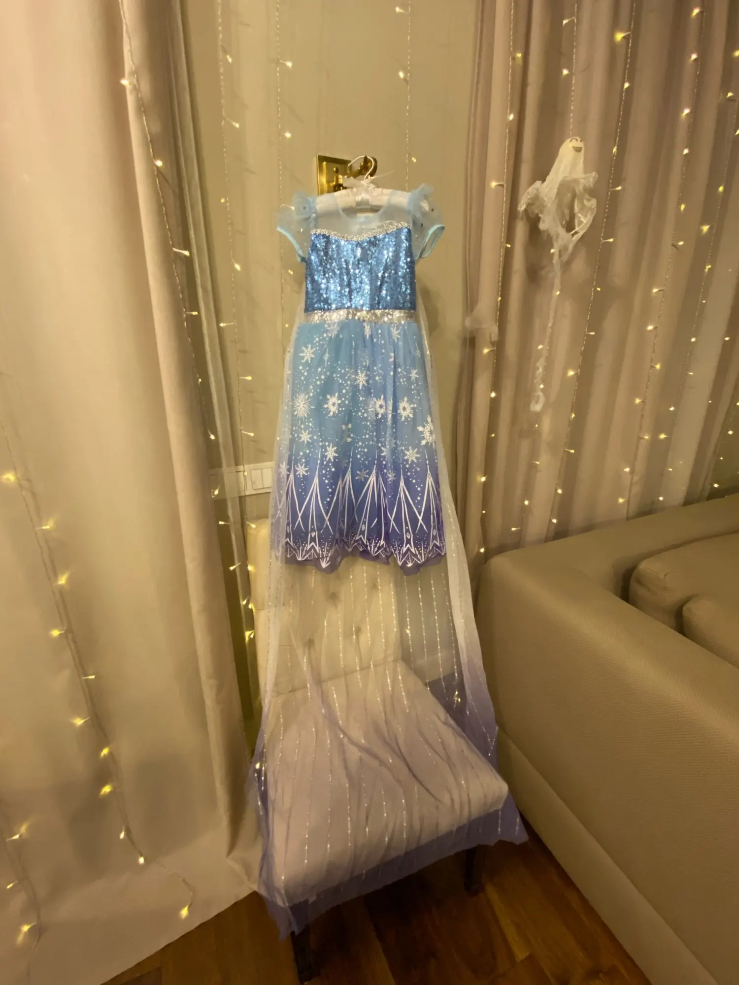 Платье отличное. Продавец написал, что размер 3Т и4Т особо ничем не отличаются, но мне нужен был размер меньше, поэтому очень переживала, что платье будет велико. Но пришло то, что надо. Хотелось бы наверно попышнее юбку, но это мелочи