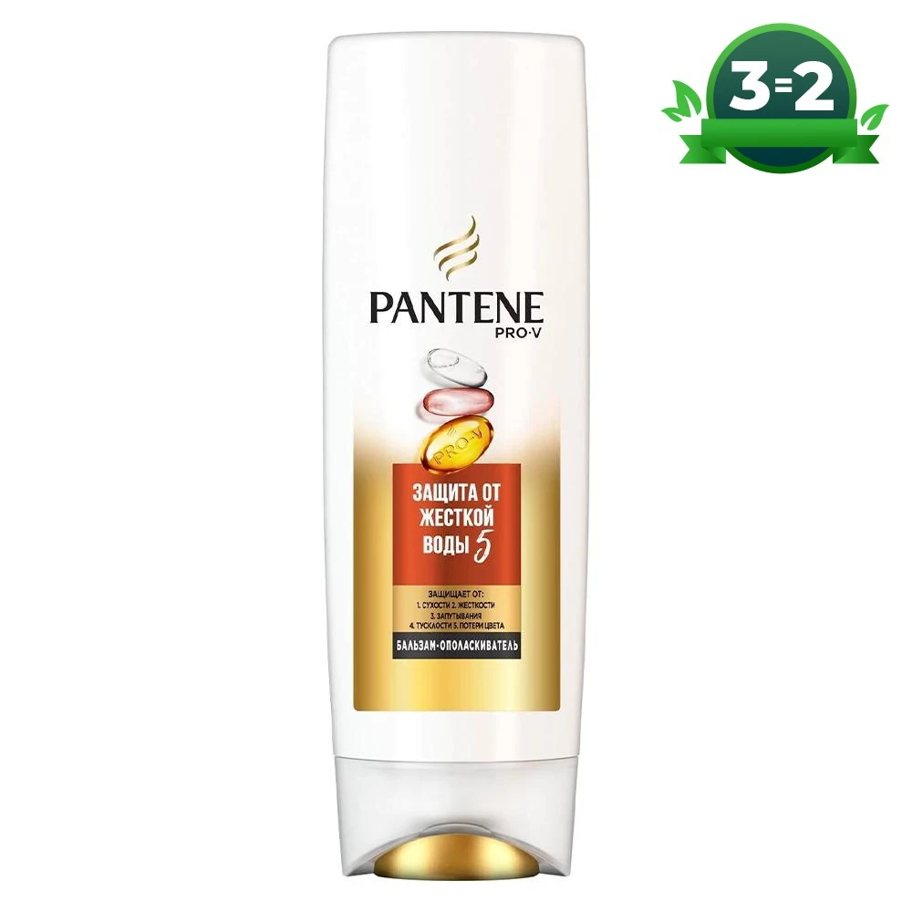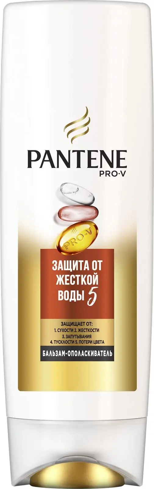 Бальзам-ополаскивательPantene Pro-V «Защита от жесткой воды 5» защищает от: 1) сухости, 2)жесткости, 3) запутывания, 4) ломкости, 5) потери цвета*. Он заряжает волосыактивными питательными веществами Pro-V, придавая им силу (сила противповреждения во время укладки). Отлично увлажняет волосы с одного применения.(*при систематическом применении шампуня и бальзама-ополаскивателя).Преимущества: Бальзам-ополаскиватель, отлично увлажняющий волосы с одногоприменения. Защищает естественный липидный слой волос. Насыщает влагой самыесухие участки. Придает волосам идеальную мягкость.