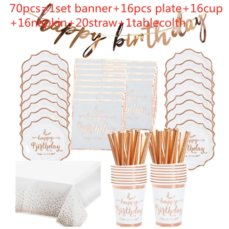 Одноразовая посуда из розового золота для украшения дня рождения, б...