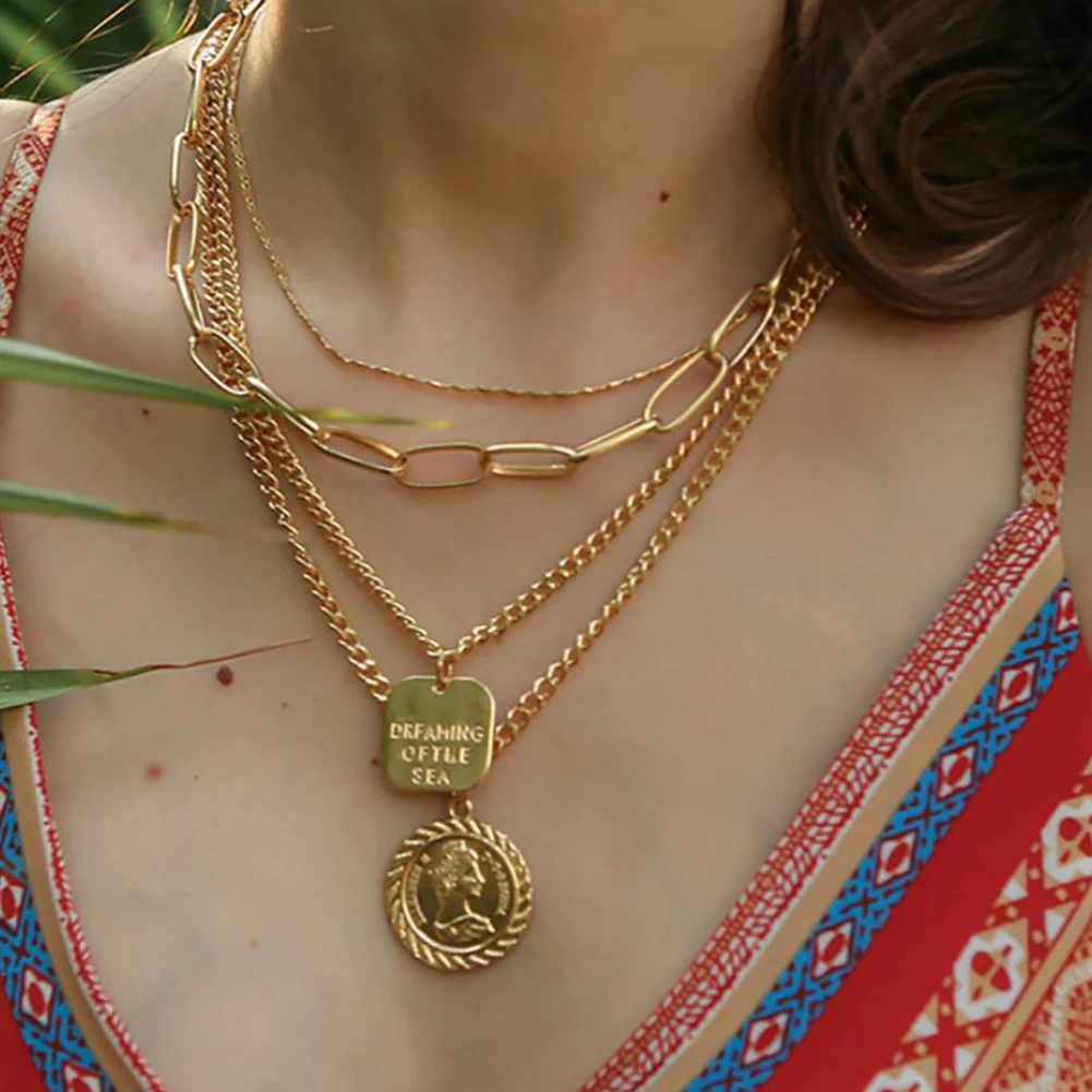 Женское винтажное ожерелье, многослойная цепочка на шею, ювелирное ...