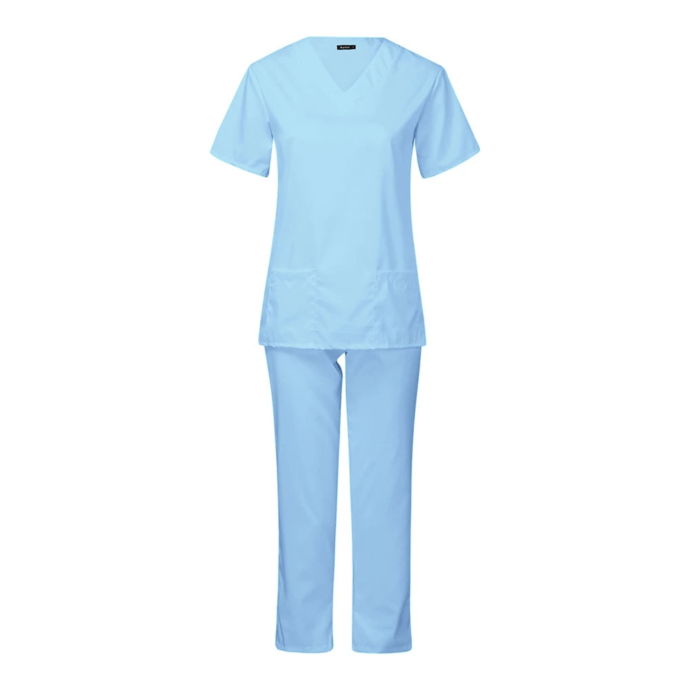 Однотонный топ + штаны, женская униформа медсестры с коротким рукав...