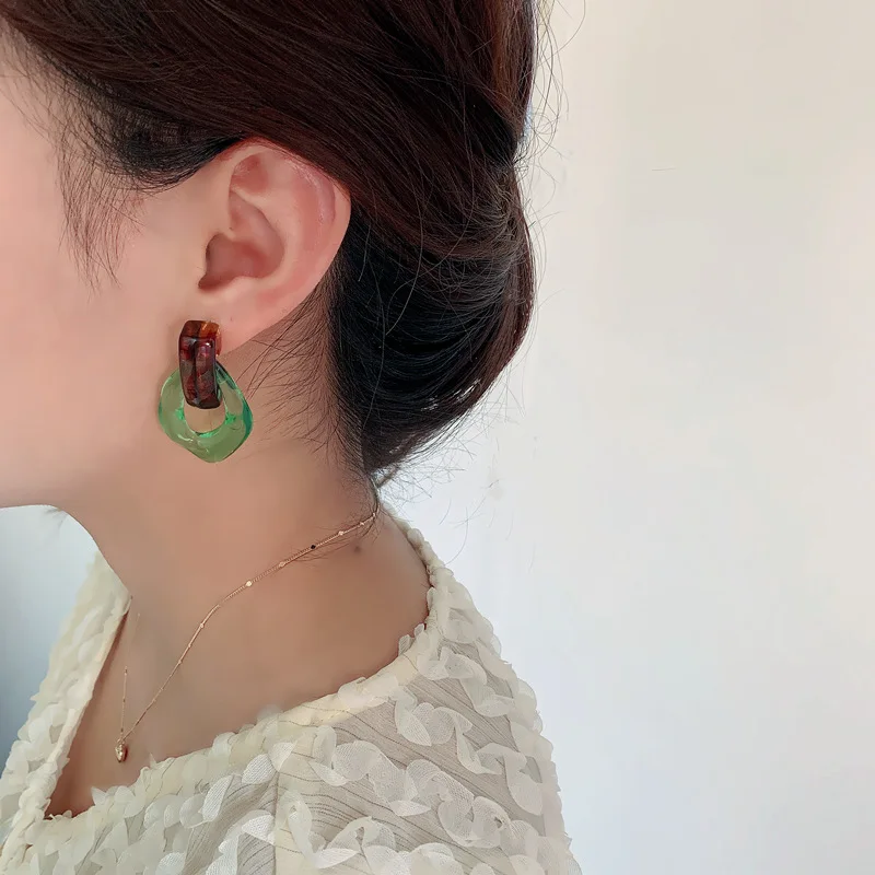Цветные ажурные акриловые серьги YANGLIUJIA, асимметричные полимерн...