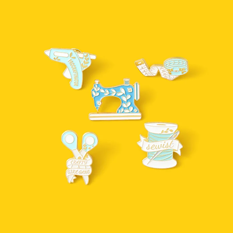 Модный Индивидуальный значок ручной работы Креативные Мультяшные ножницы линейка швейная машина металлическая эмалированная брошь лацкан рюкзак ювелирные изделия подарок