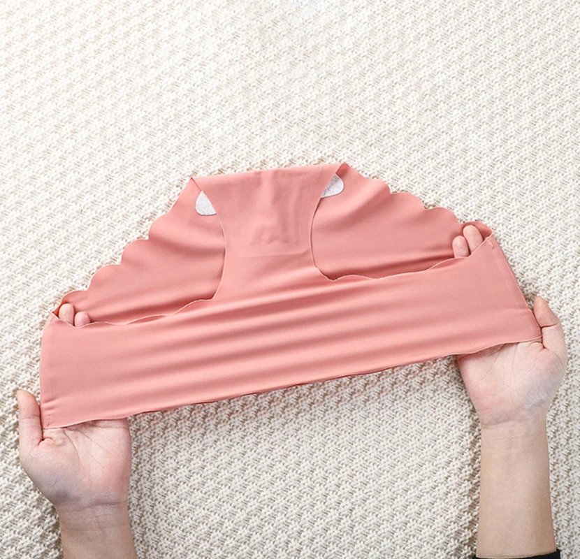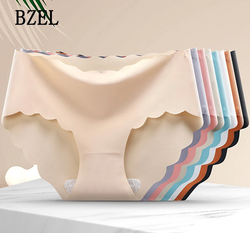 Трусики женские шелковые бесшовные с оборками, однотонные
