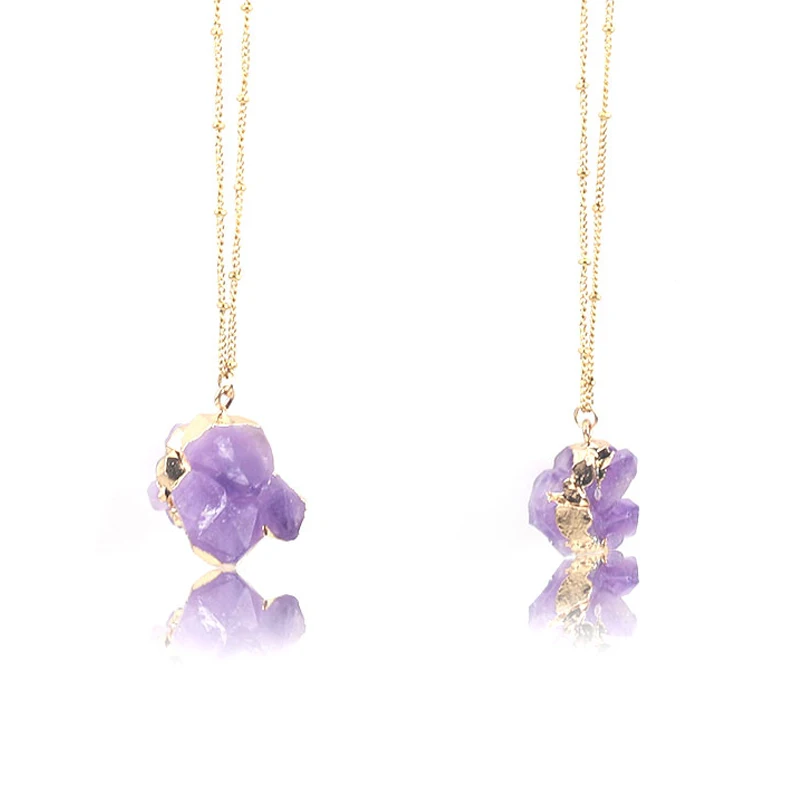 Асимметричное ожерелье с подвеской из натурального драгоценного камня, ожерелье с фиолетовыми кристаллами чакры, кварца, аметиста, богемное модное Подарочное ювелирное изделие