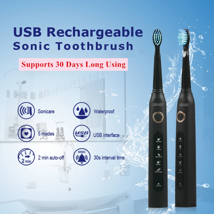 Seago Sonische Elektrische Tandenborstel SG-507 Volwassen Waterdichte IPX7 5 Modus Usb Opladen Oplaadbare Tand Borstels Vervanging Heads