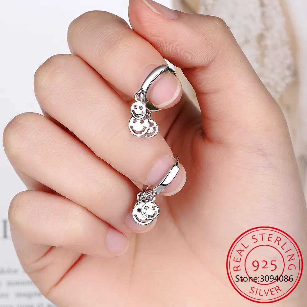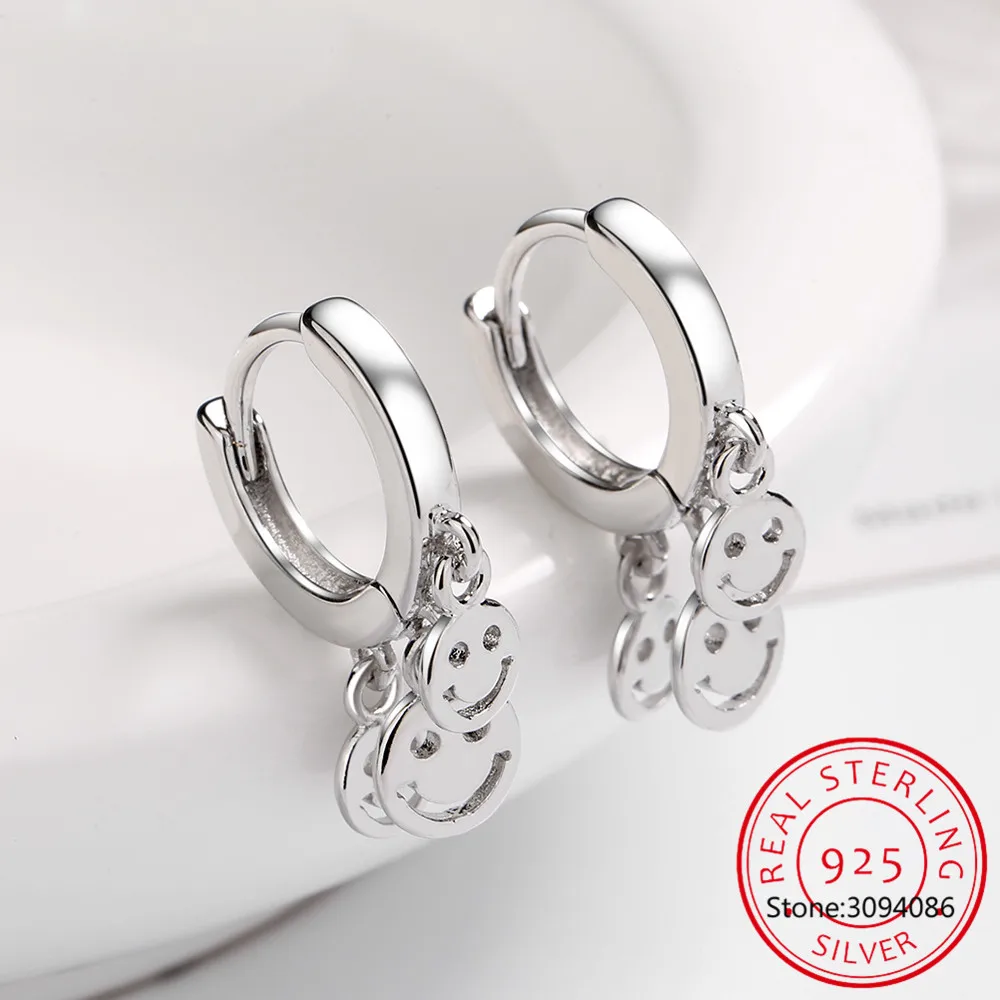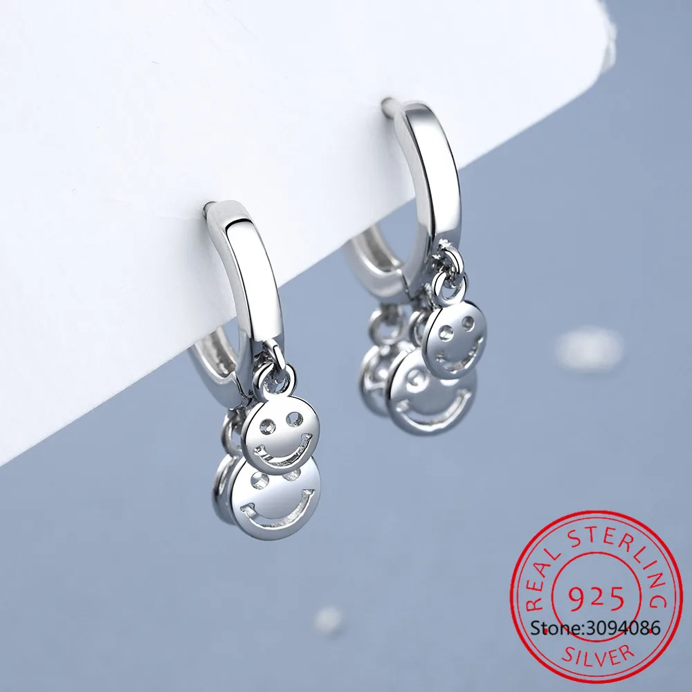 Женские серьги-подвески со смайликом, из серебра 925 пробы