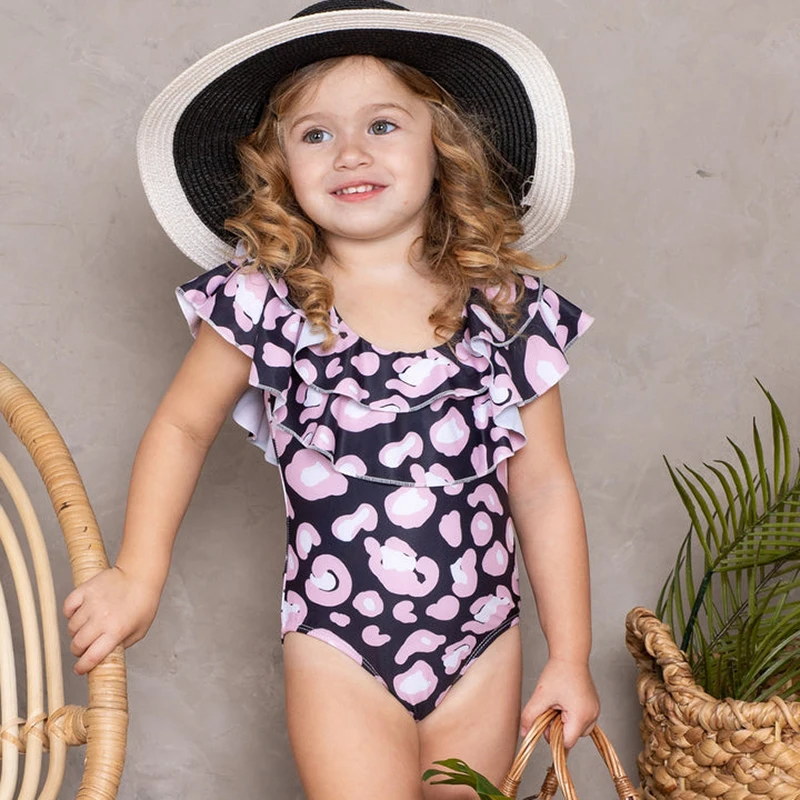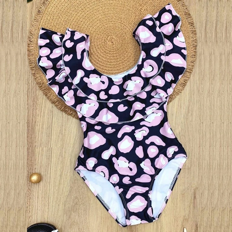 Купальник для маленьких девочек, детский слитный купальник с цветочными оборками, детская пляжная одежда с открытой спиной, черный купальный костюм