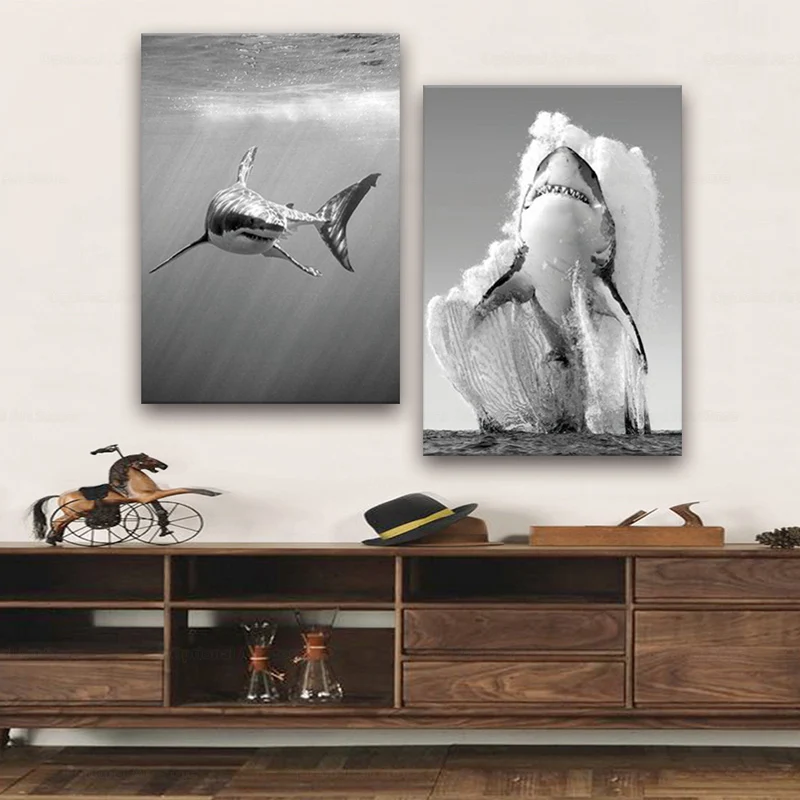 Уличные граффити, художественные постеры и принты акулы, абстрактны...
