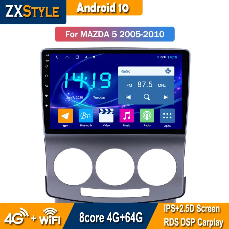 9 дюймовый IPS 4G + 64G Android 10 автомобильный радиоприемник DVD-плеер для Mazda 5 2005-2010 GPS Glonass Навигация Аудио Видео