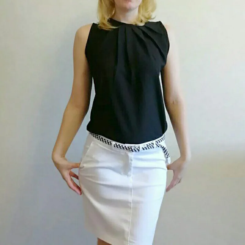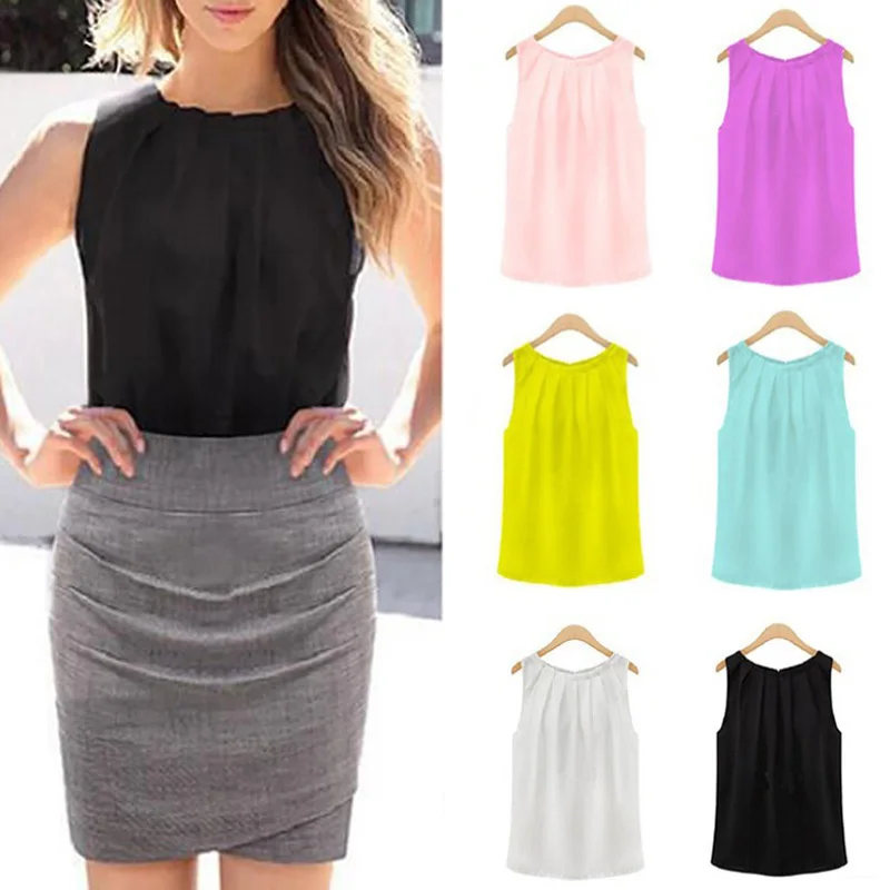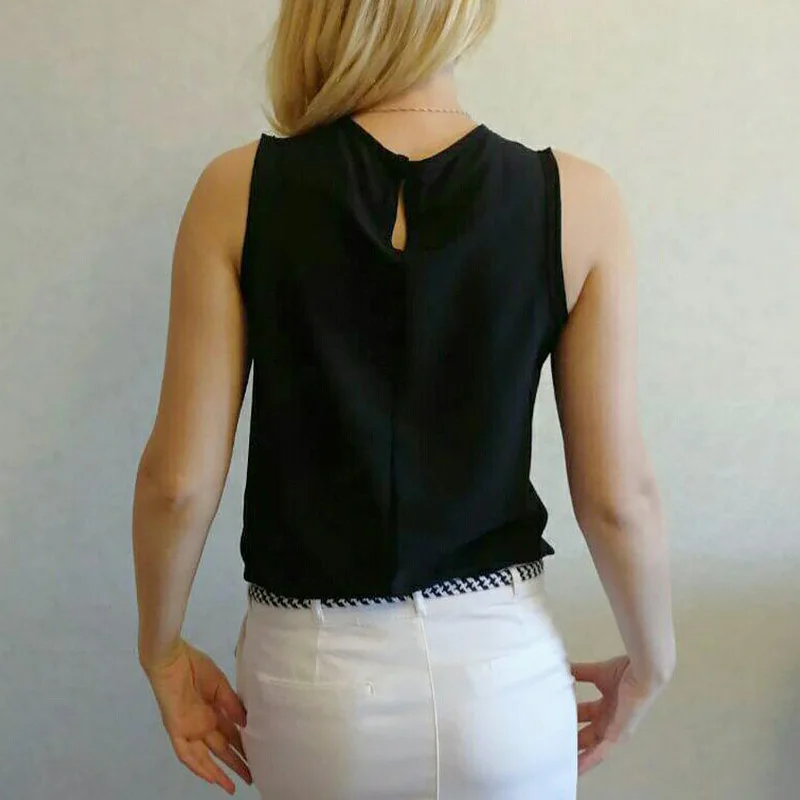 Женская шифоновая блузка без рукавов, с круглым вырезом, лето 2019