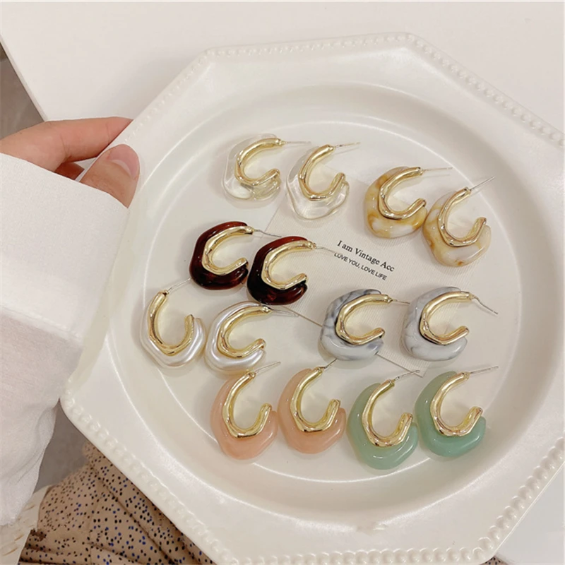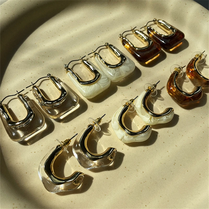 Женские Прозрачные Серьги-кольца AOMU 2021 в ретро-стиле с цветным геометрическим рисунком u-образной формы, вечерние ювелирные изделия для путешествий