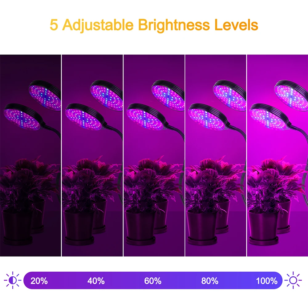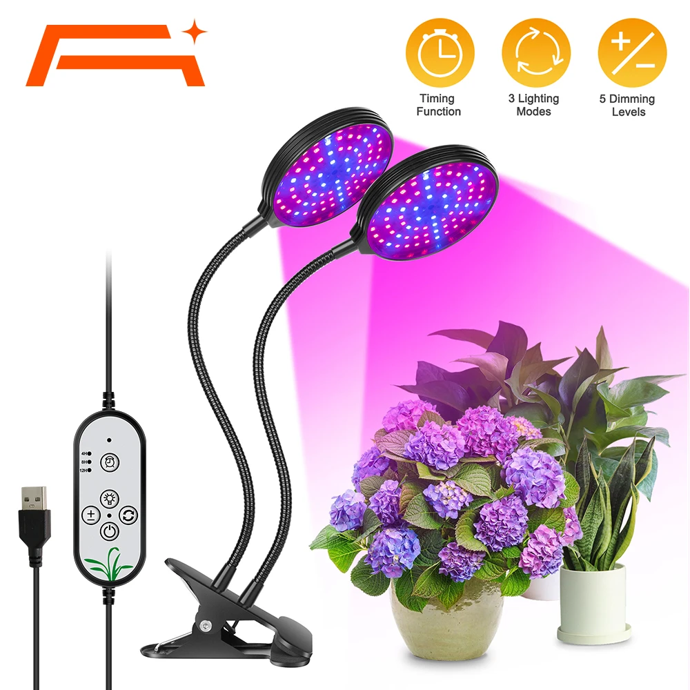 A + лампа для выращивания растений, 5 уровней яркости, ламсветильник для выращивания растений в помещении с красным и синим спектром, 3 режима, функция таймера