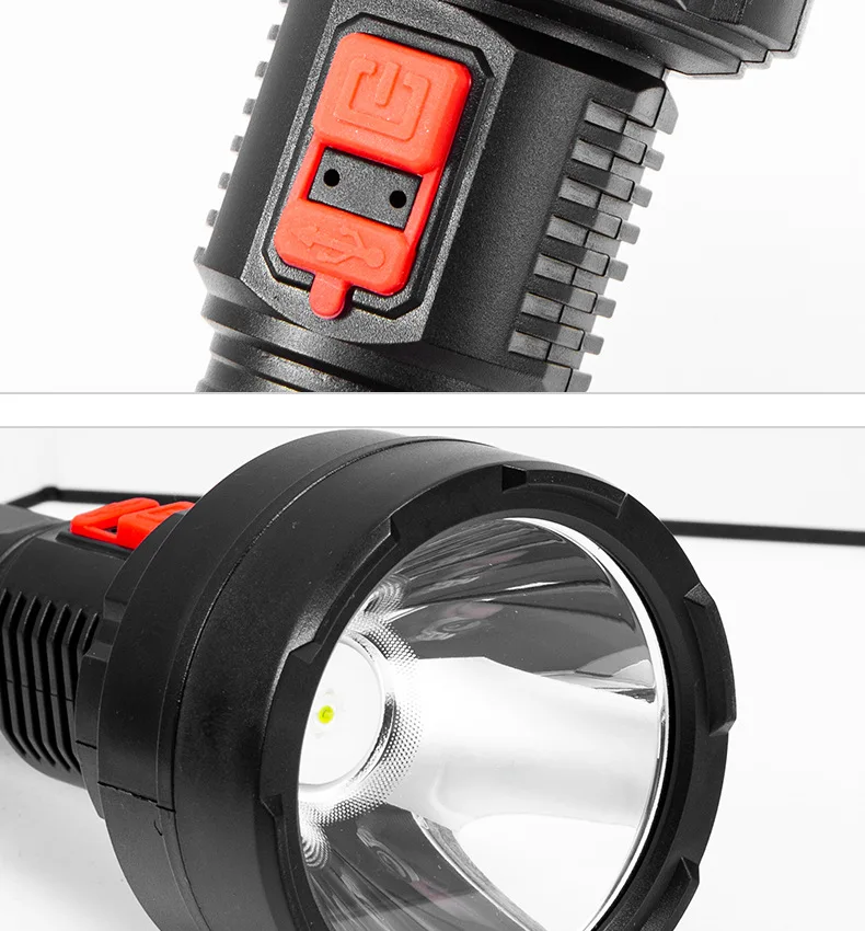 Светодиодный фонарик с большим прожектором, Перезаряжаемый USB фонарь со встроенным аккумулятором, портативный фонарь с концентрирующим большим радиусом действия