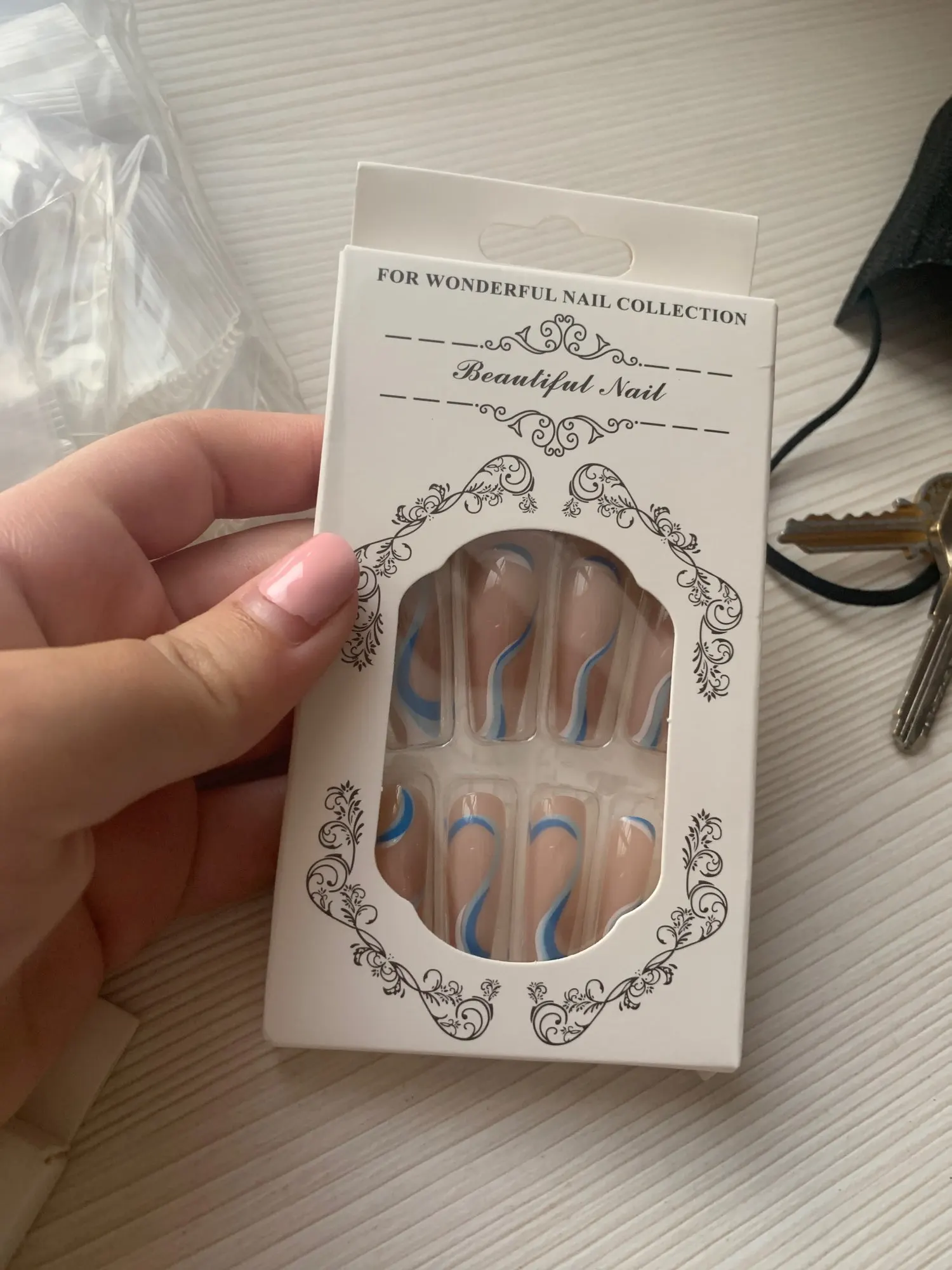 100% новый товар высокого качества.Материал изделия: АБС-пластикТип изделия: длинные балеткиЦвет: синий и белыйПростота в использованииПодходит для использования с гелем, акрилом или стекловолокном.Посылка включает в себя:24 шт./кор. накладные ногти + пресс клей