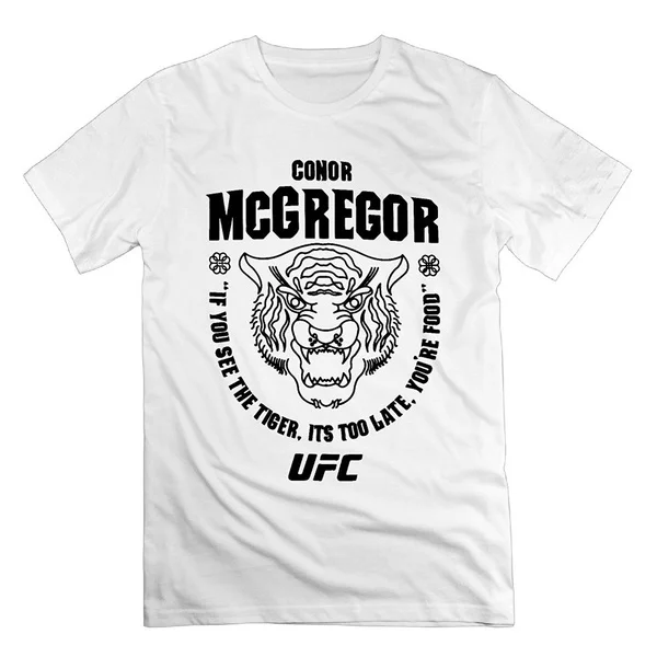 Conor McGregor 202 Мужская футболка с изображением тигра еды, повседневная мужская футболка с коротким рукавом для фитнеса, белая