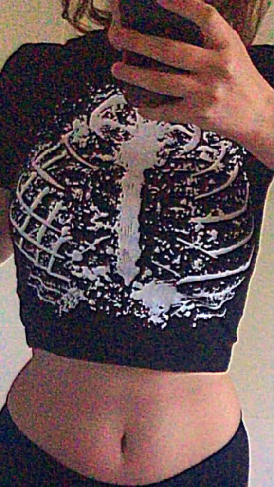 Женская Винтажная футболка в стиле 90-х, с коротким рукавом, с графическим принтом в стиле гранж, Y2k, летний облегающий топ в стиле панк-рок, готика, Харадзюку