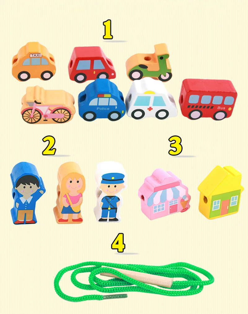 Деревянные бусины-струны, Обучающие игрушки, сортировка, Укладка блоков, занятия, шнуровка, пазлы, игрушки, мелкая моторика, навыки Монтессори, для малышей