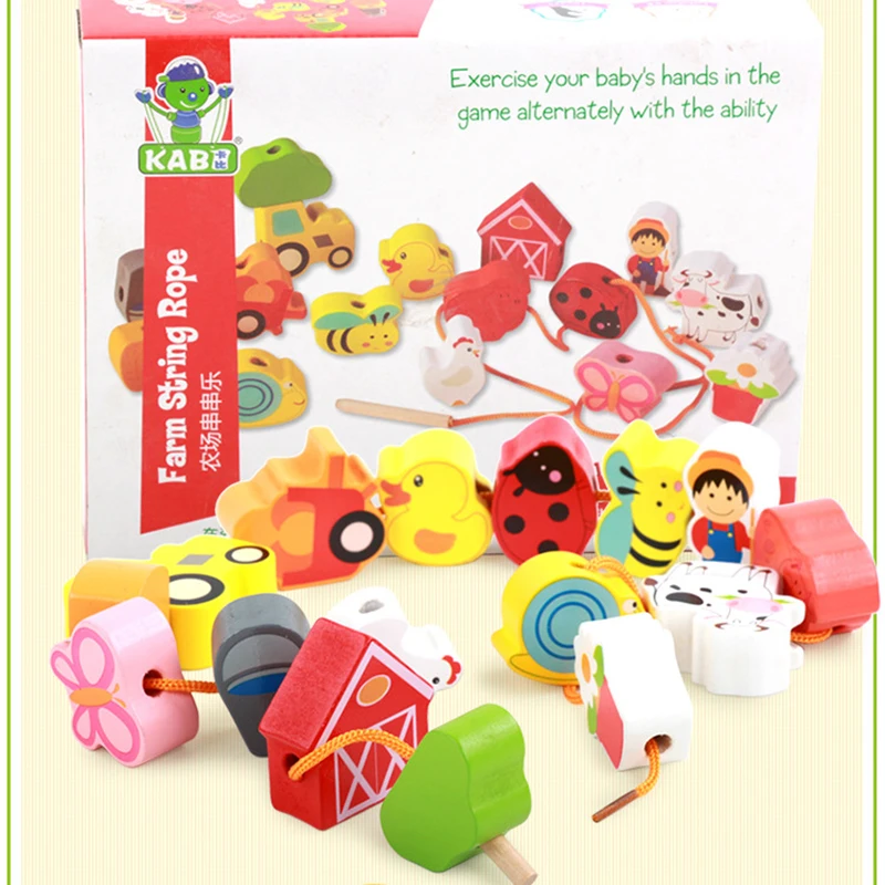 Деревянные бусины-нитки, развивающие игрушки, сортировочные штабелируемые блоки, игры-пазлы на шнуровке, игрушки для мелкой моторики, малыши Монтессори