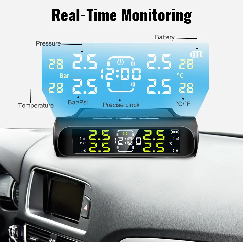 Система мониторинга давления в шинах K20, система контроля давления в шинах с часами, ЖК-экраном и солнечной панелью, E-ACE