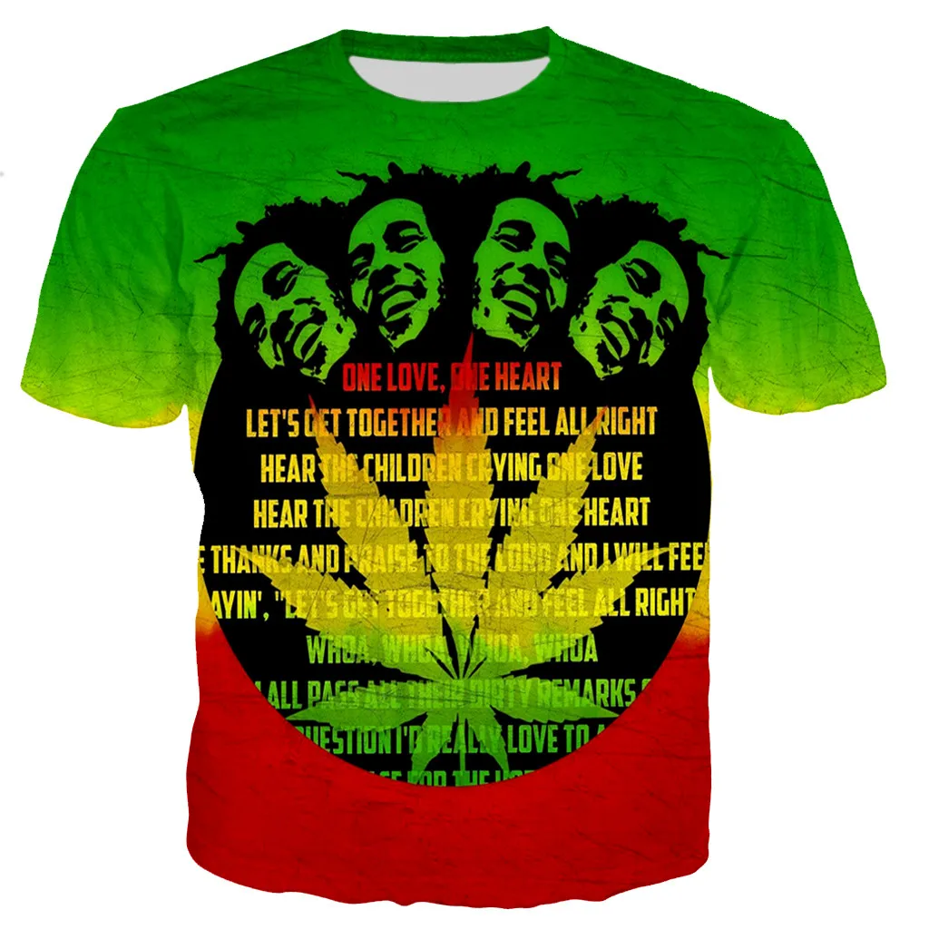 Футболка унисекс с 3d принтом, Модный повседневный свитшот с круглым вырезом, топ в стиле хип-хоп с коротким рукавом, певица, Боб, Марли