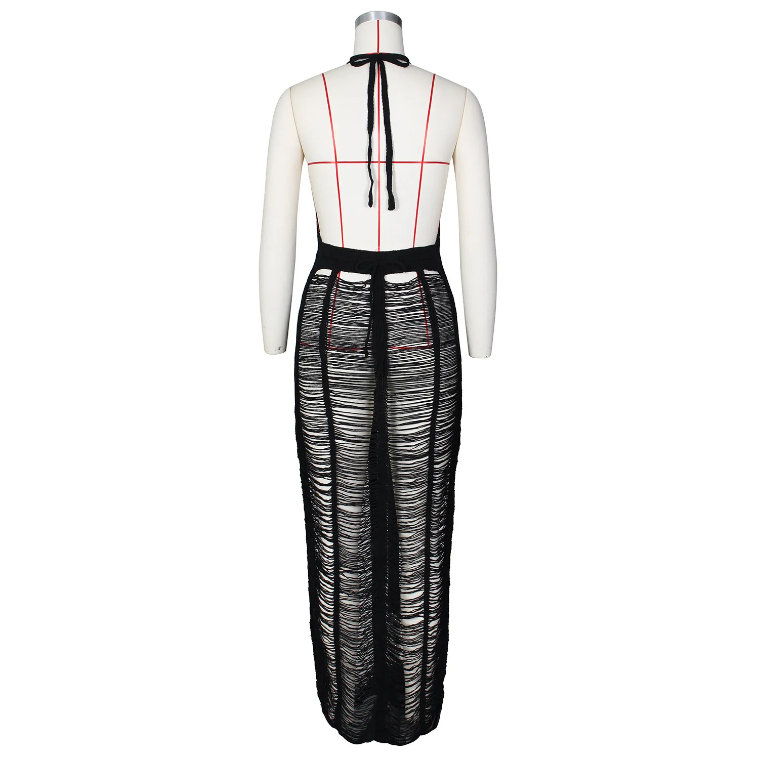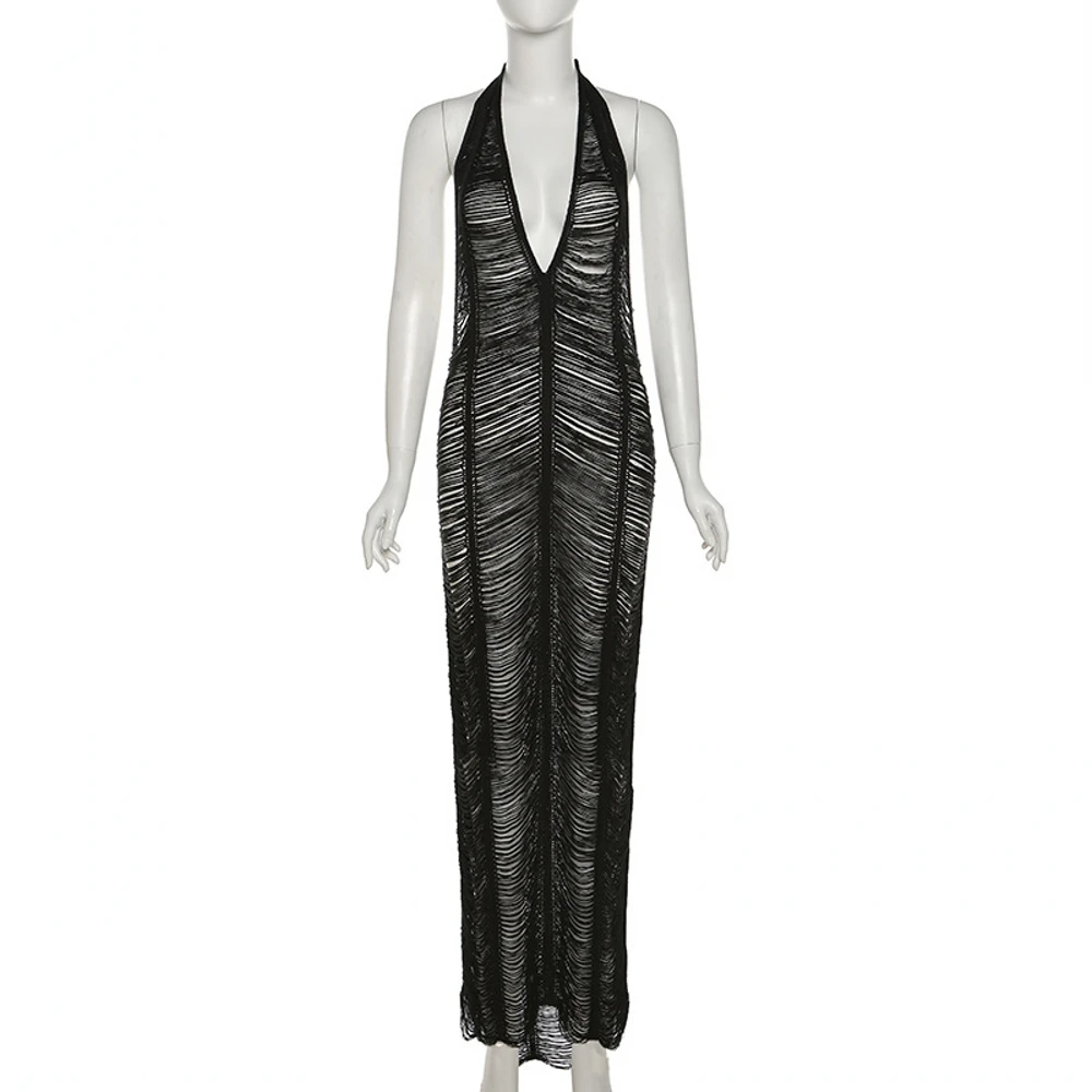 Сексуальное пляжное платье-сетка без рукавов, прозрачный ажурный сарафан с лямкой на шее, женское бикини, платье-макси с открытой спиной, пляжная одежда