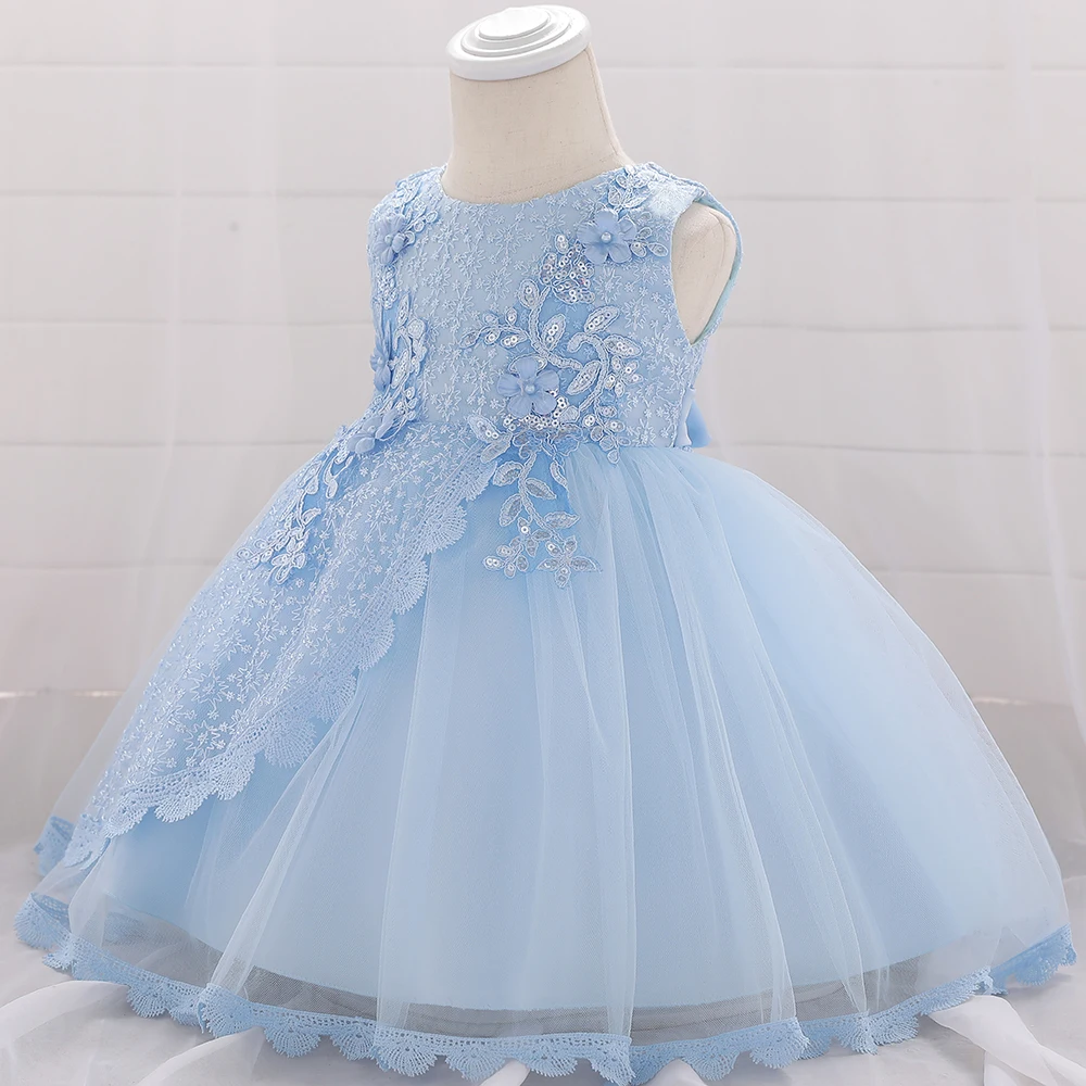 Платье для крещения новорожденных девочек 1 год, кружевное бальное платье с пайетками