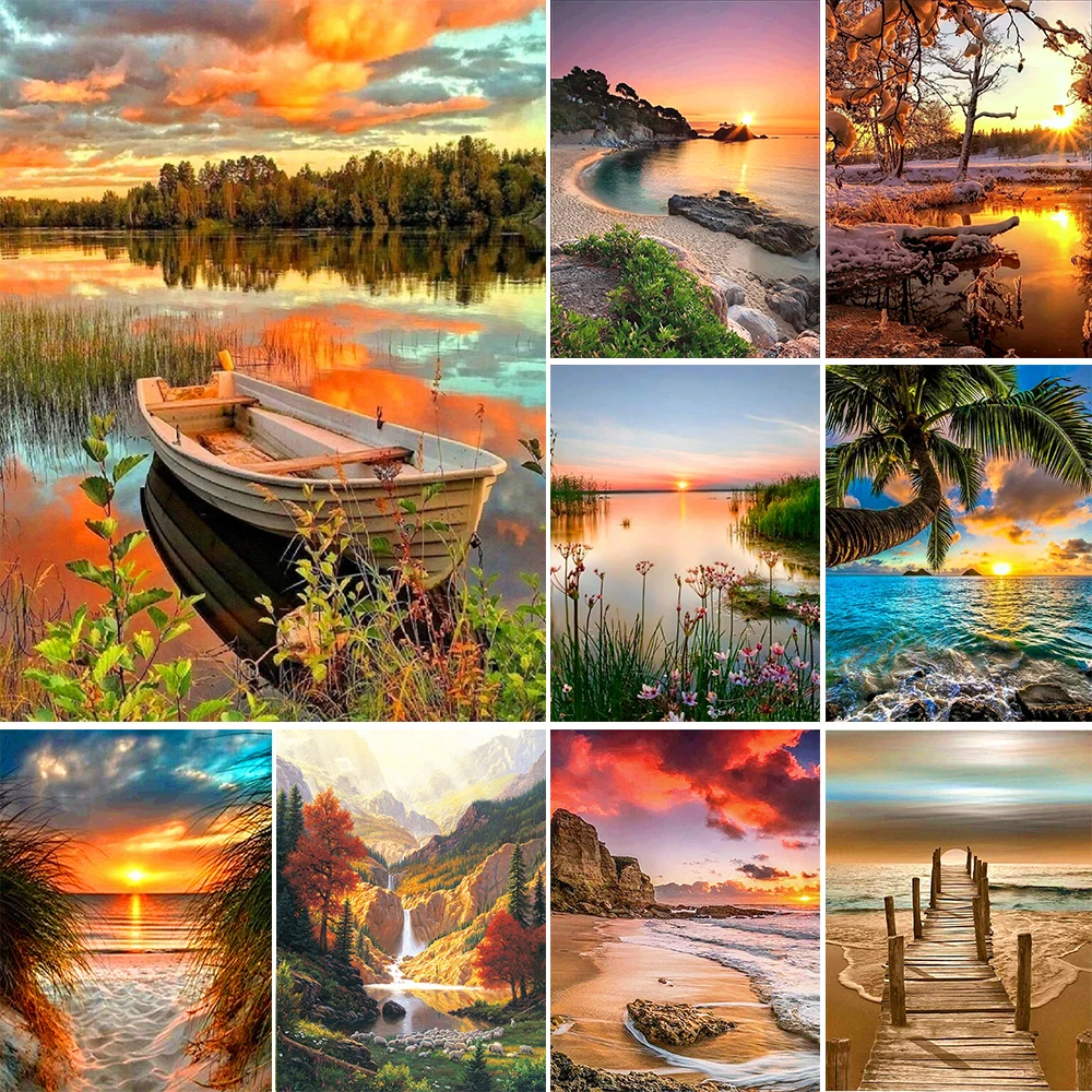 5D алмазная живопись, пейзаж, вид на море, круглая вышивка, Набор для вышивки крестиком, мозаика, сделай сам, украшение для дома, подарок