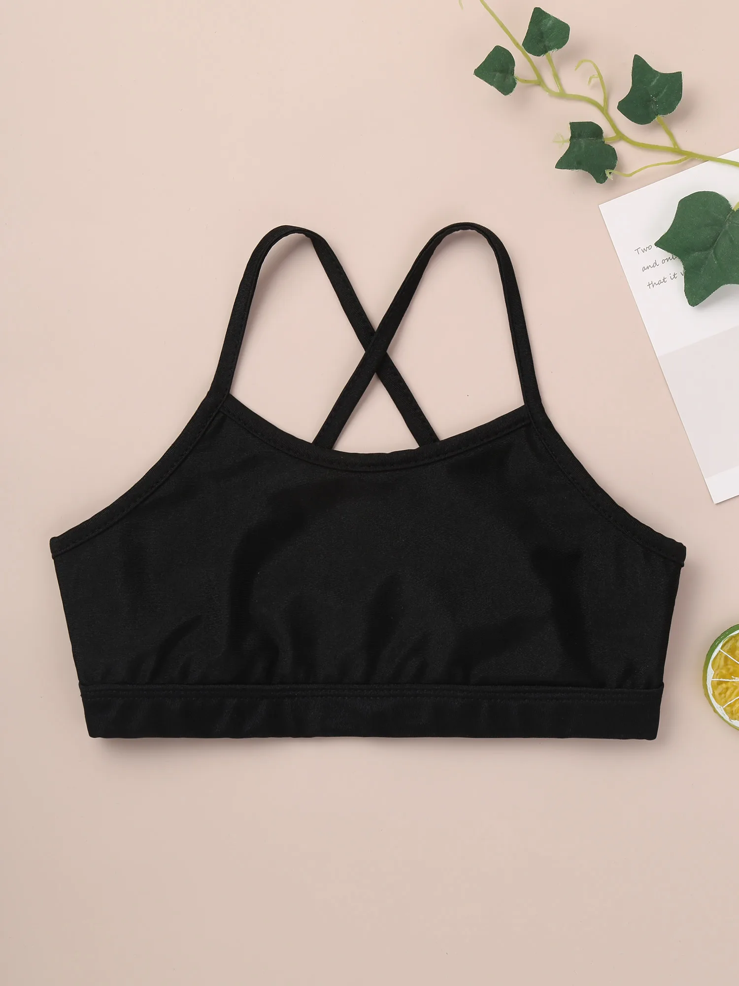 Детские Майки для девочек, топы на тонких бретельках с вырезами сзади, укороченный топ, костюм для танцев, выступлений, джаза, спорта, гимнастики, балетные Топы