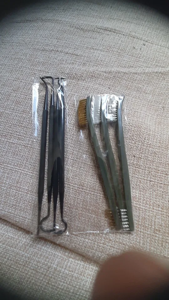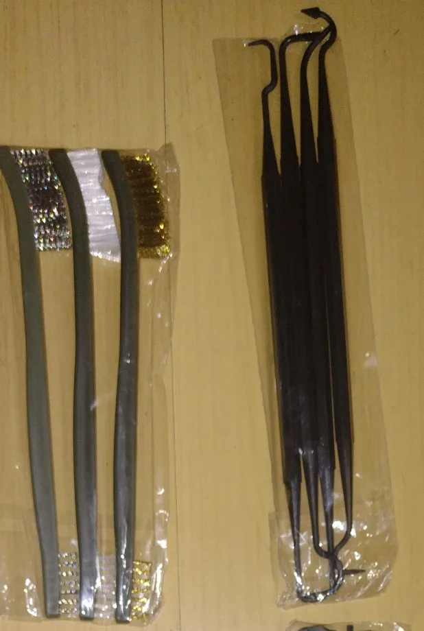 Посылку продавец долго отправлял, но доехала она очень быстро в Тверь. Нормальный наборчик за свои деньги. Ковырялки из хорошего твердого пластика - не расцарапаете свои игрушки. у щеток есть ворсинки длиннее остальных, но это фигня - кусачками отрезать можно.
