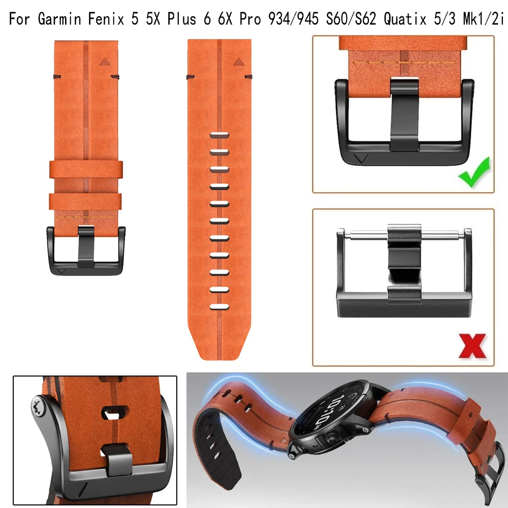 Для Garmin Fenix 6 6X Pro 5 5X Plus 3/3HR браслет Quickfit 26 22 мм кожаный ремешок для часов Forerunner 935/945 3HR MK1 браслет